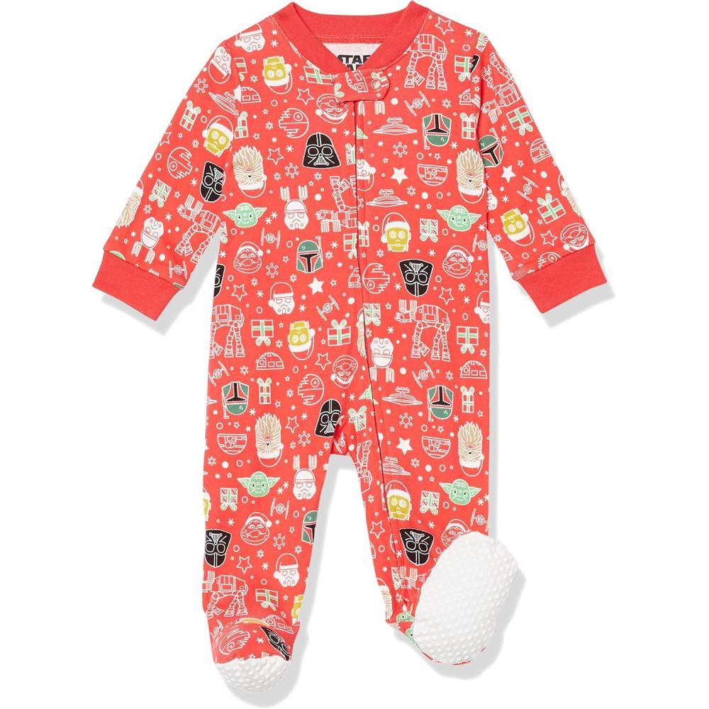 imageAmazon Essentials Disney  Marvel  Star Wars Unisex Babies and Toddlers SnugFit Cotton Footed Pajamas MultipacksStar Wars Holiday  Sleep  Play