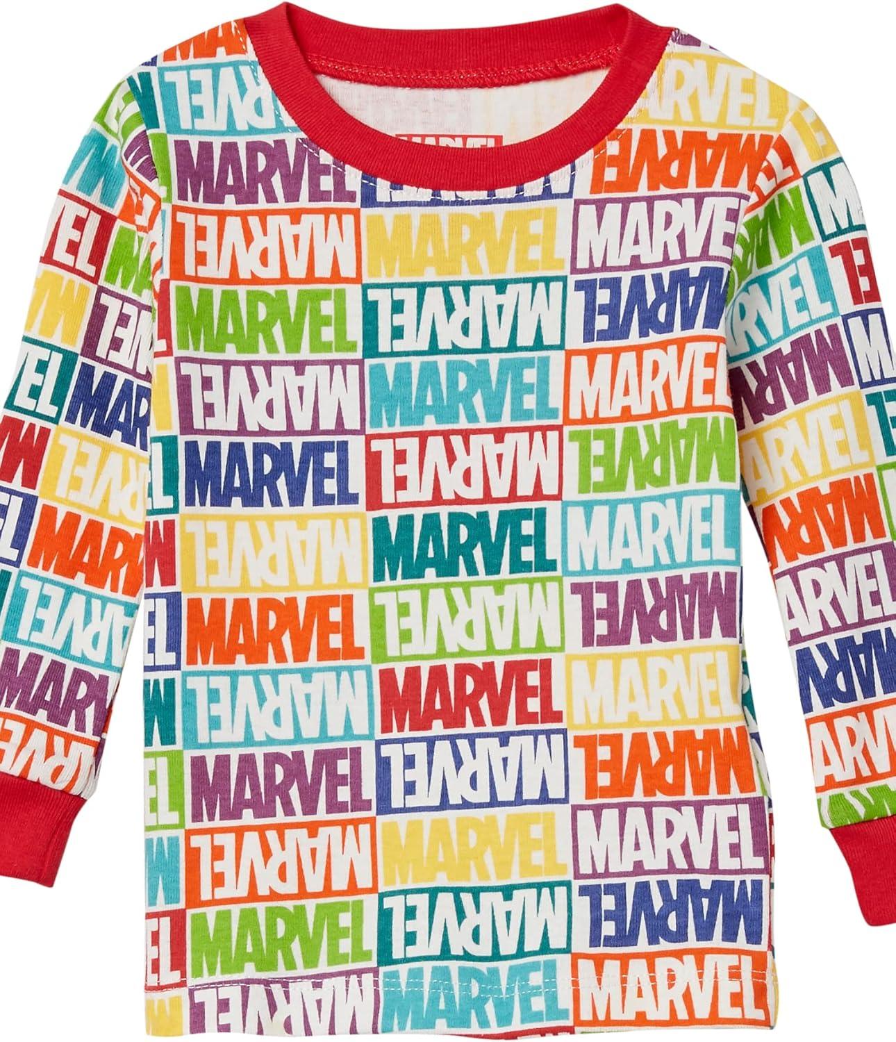 Amazon Essentials Disney | Marvel | Star Wars Unisex Kids' Snug-Fit Cotton Pajamas(Marvel Holiday Bricks)
