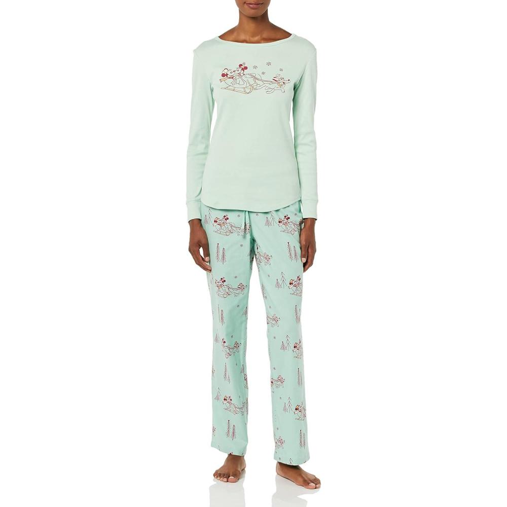 Amazon Essentials Disney | Marvel | Star Wars Women’s Flannel Pajama Sleep Sets(Mickey Holiday – Womens)