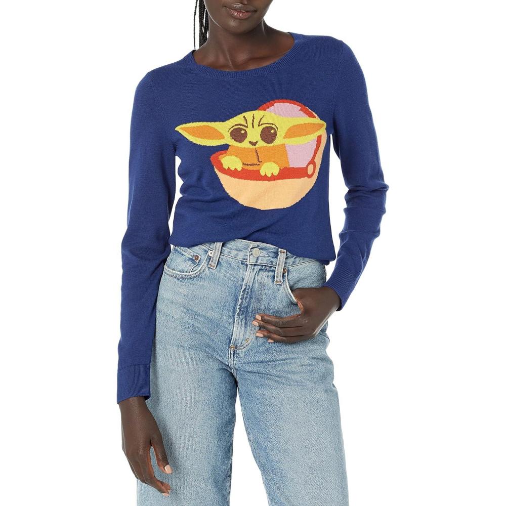 Amazon Essentials Disney | Marvel | Star Wars Women’s Lightweight Crewneck Sweaters(Star Wars Grogu – Womens)