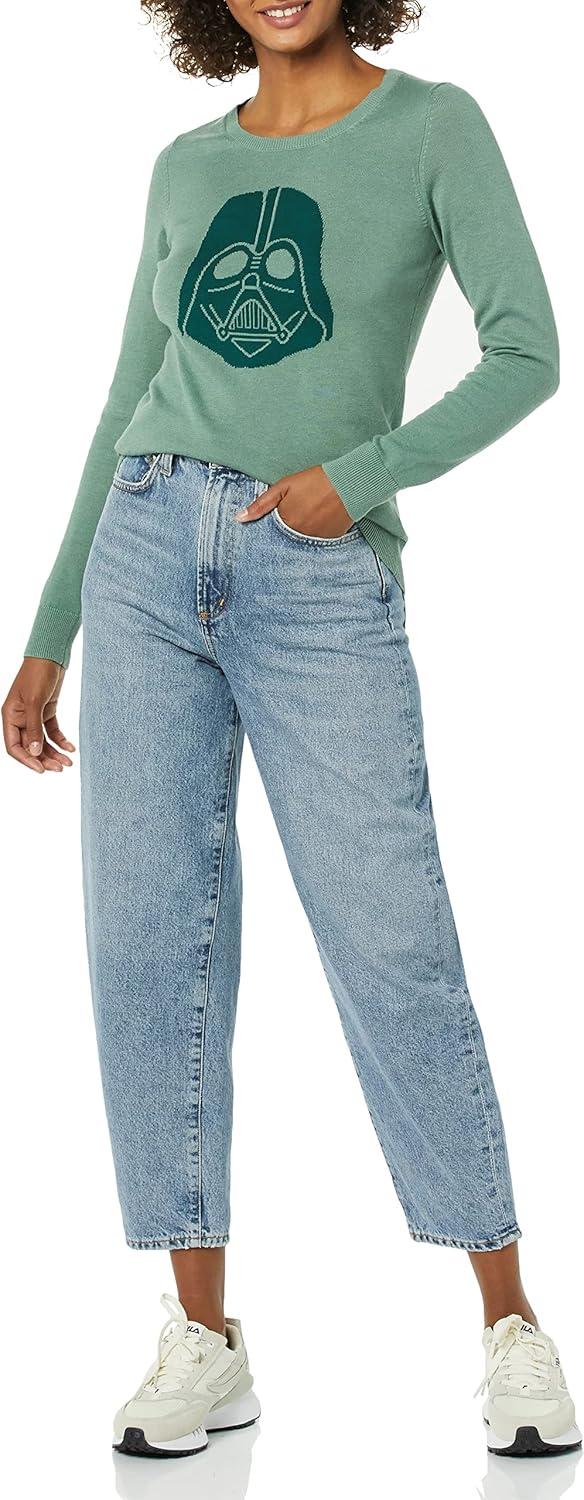 Amazon Essentials Disney | Marvel | Star Wars Women’s Lightweight Crewneck Sweaters(Star Wars Vader)