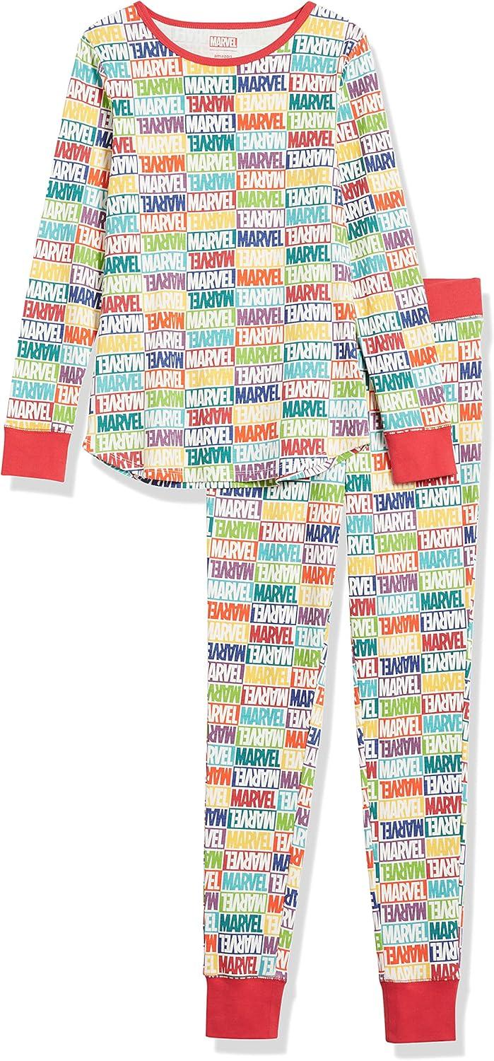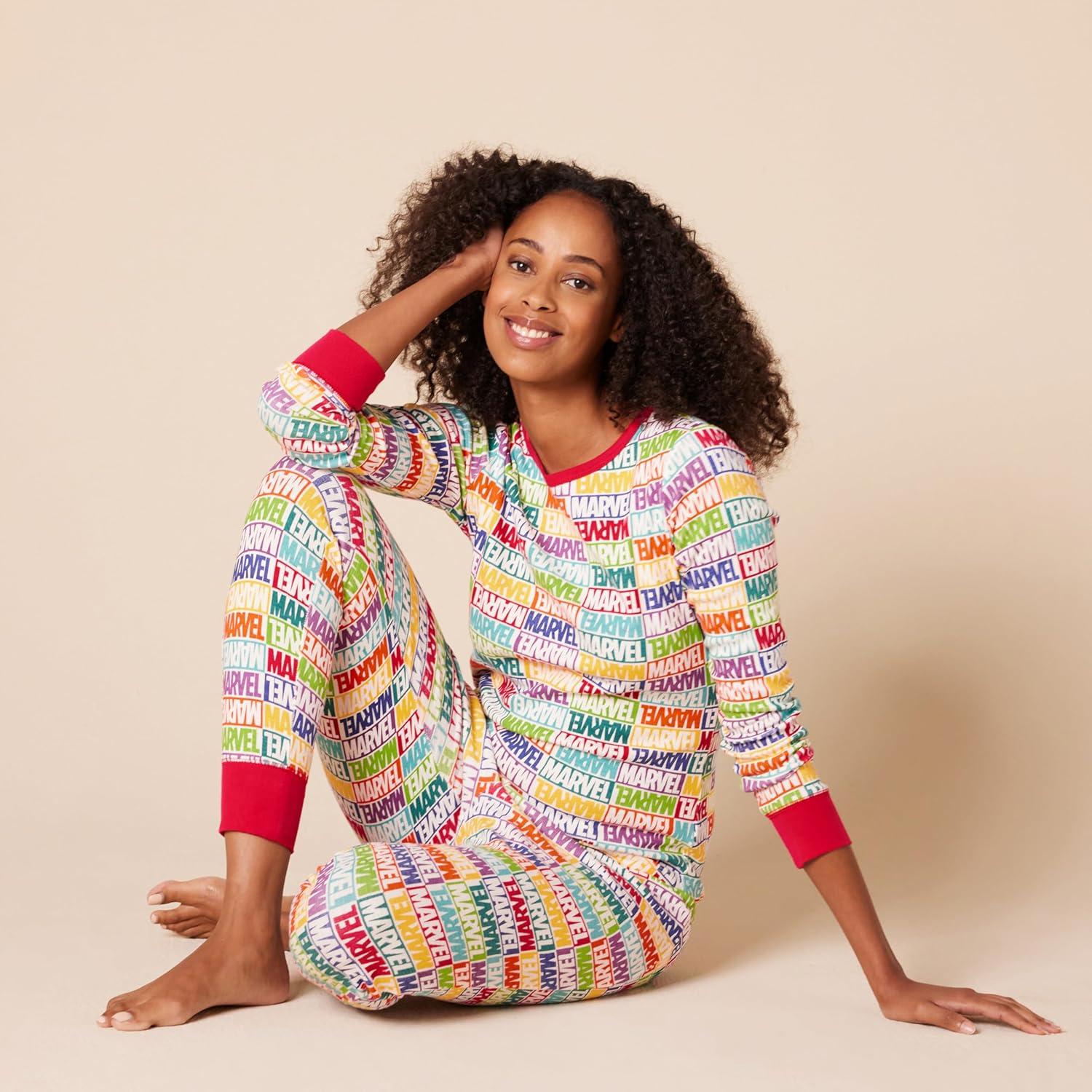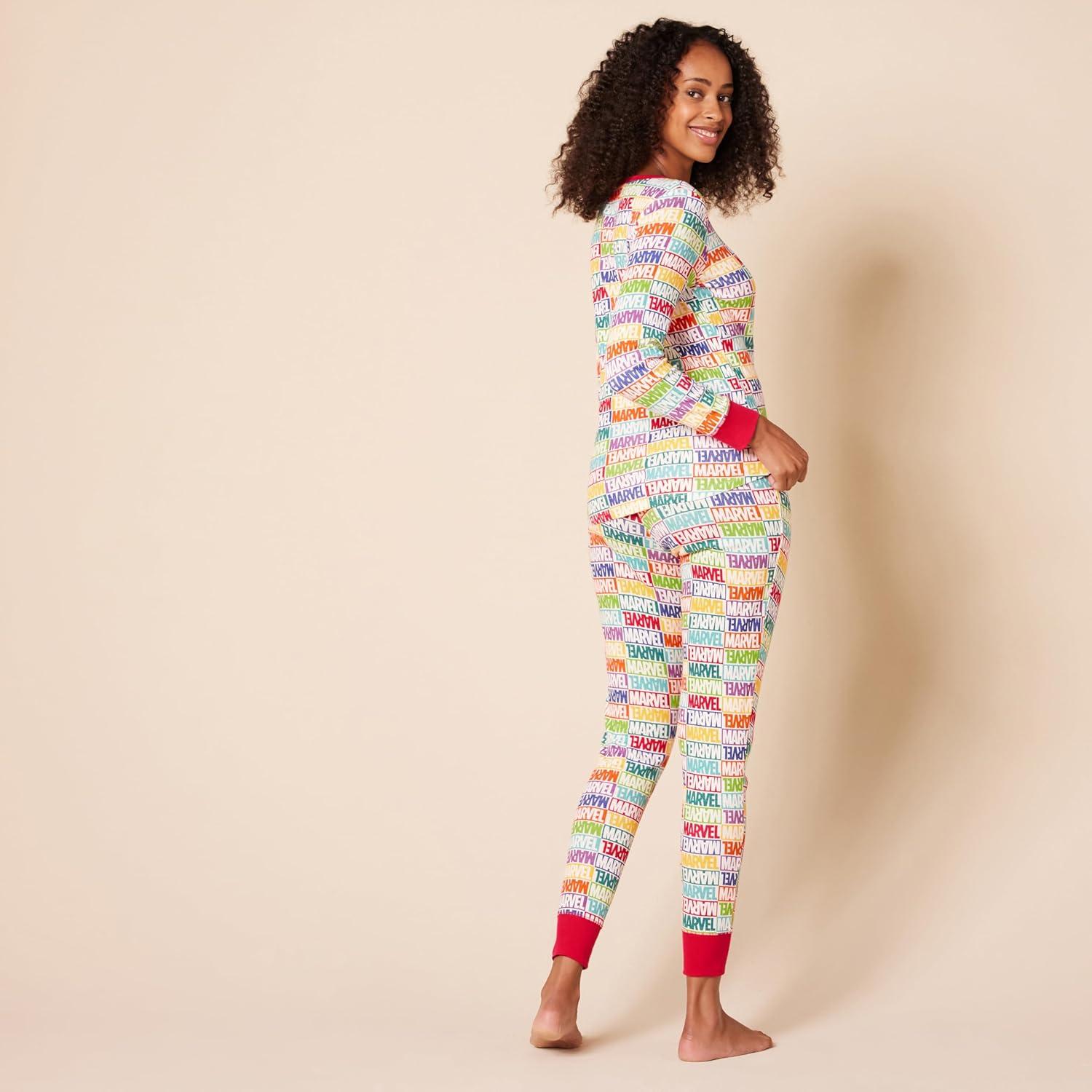 Amazon Essentials Disney | Marvel | Star Wars Women's Snug-Fit Cotton Pajama Sleepwear Sets(Marvel Holiday Bricks)