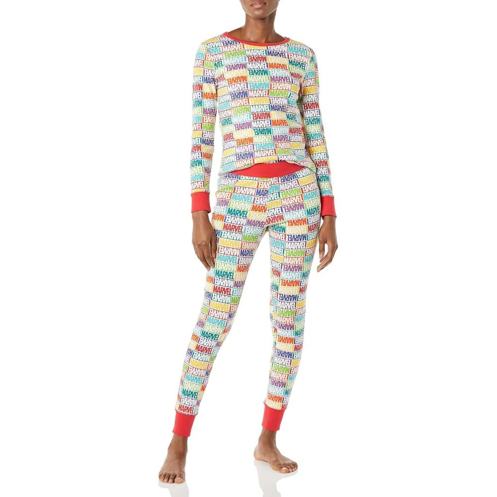 Amazon Essentials Disney | Marvel | Star Wars Women’s Snug-Fit Cotton Pajama Sleepwear Sets(Marvel Holiday Bricks)