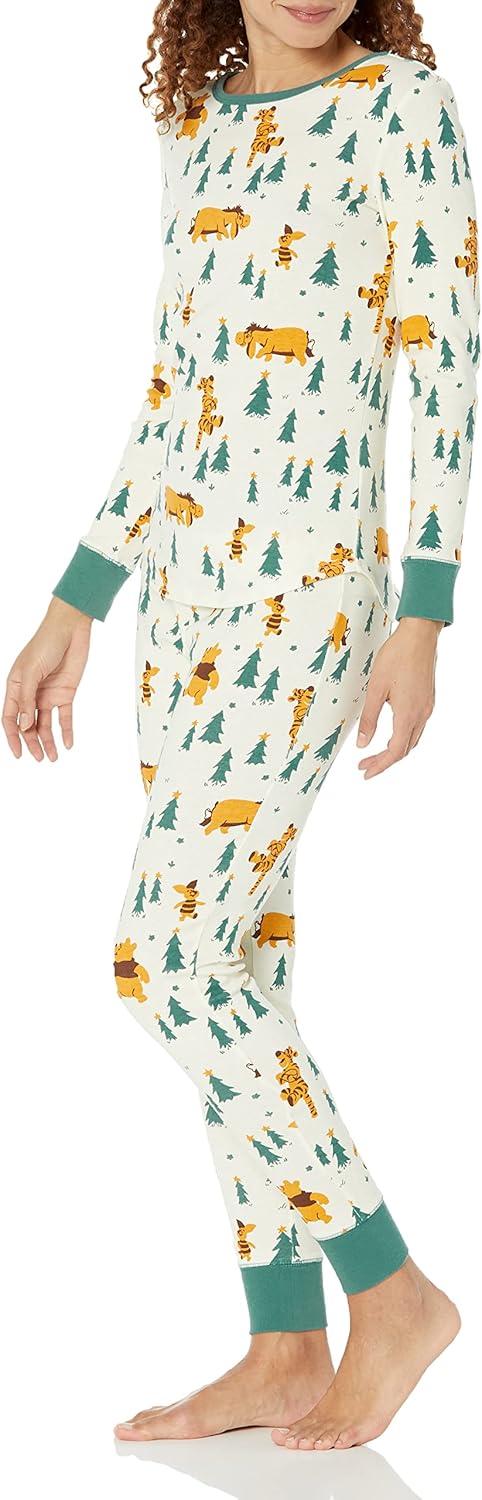 Amazon Essentials Disney | Marvel | Star Wars Women's Snug-Fit Cotton Pajama Sleepwear Sets(Pooh Holiday Forest - Womens Snug Fit)
