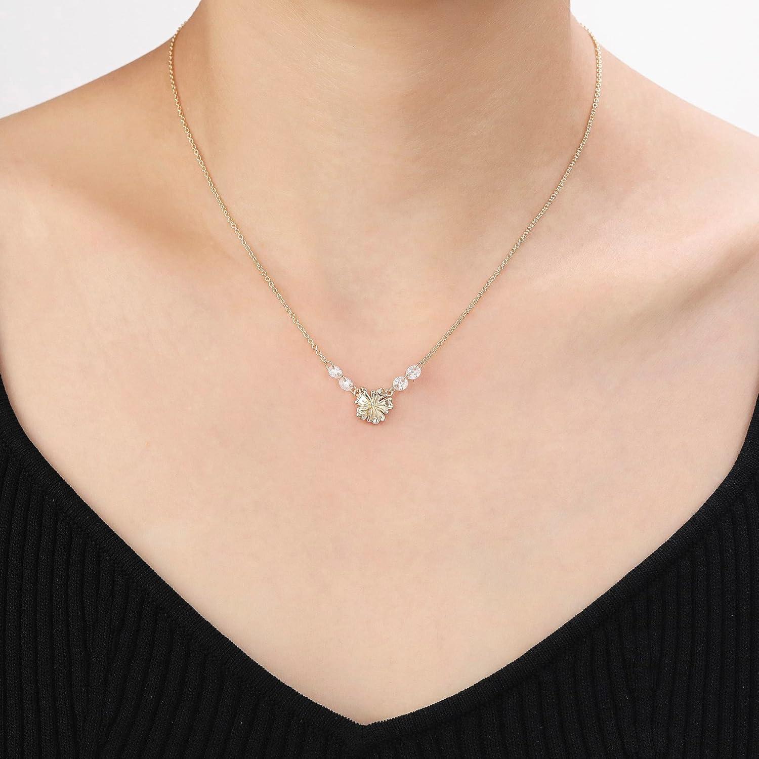 The Lilo & Stitch hibiscus pendant necklace is perfectly adorned by cubic zirconia accents.
