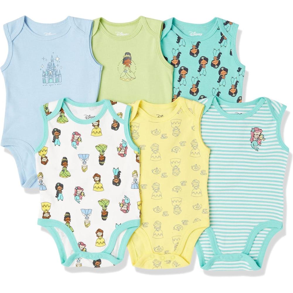 Amazon Essentials Disney | Star Wars | Princess Baby Girls’ Sleeveless Bodysuits, Pack of 6(Princess Wish)