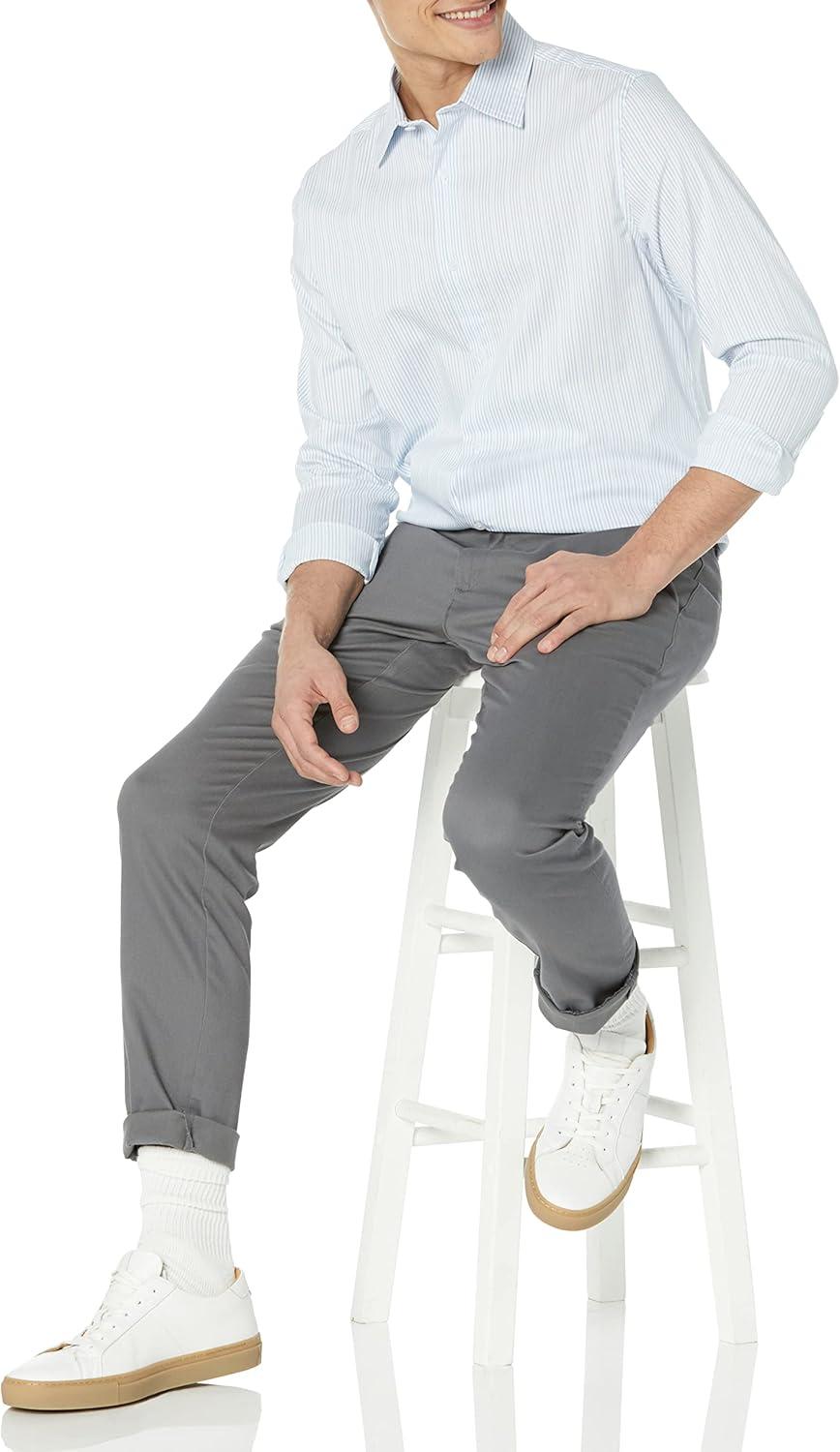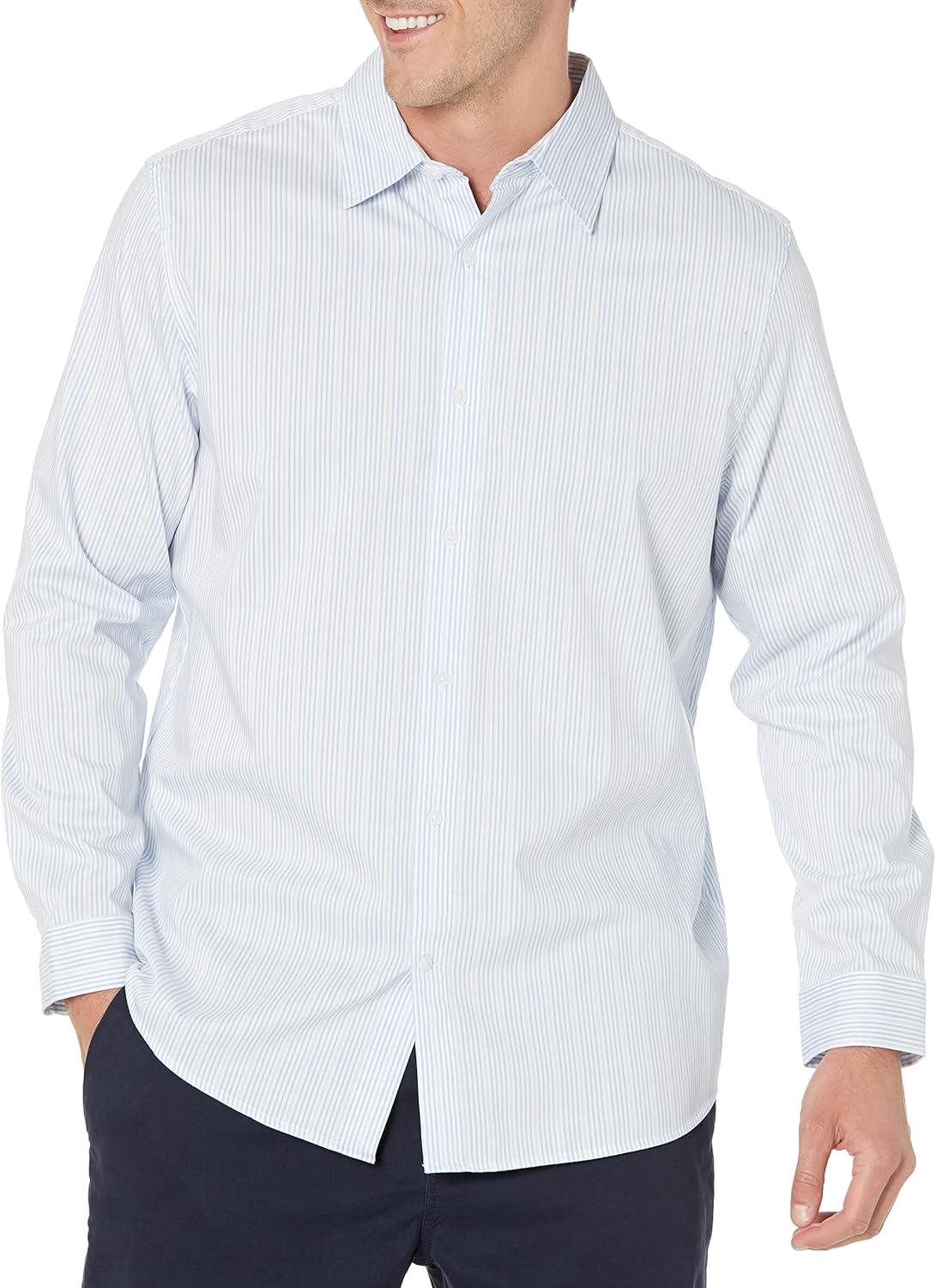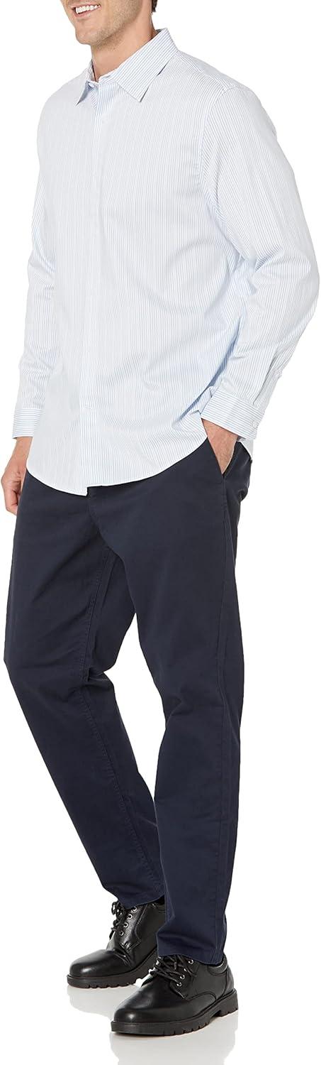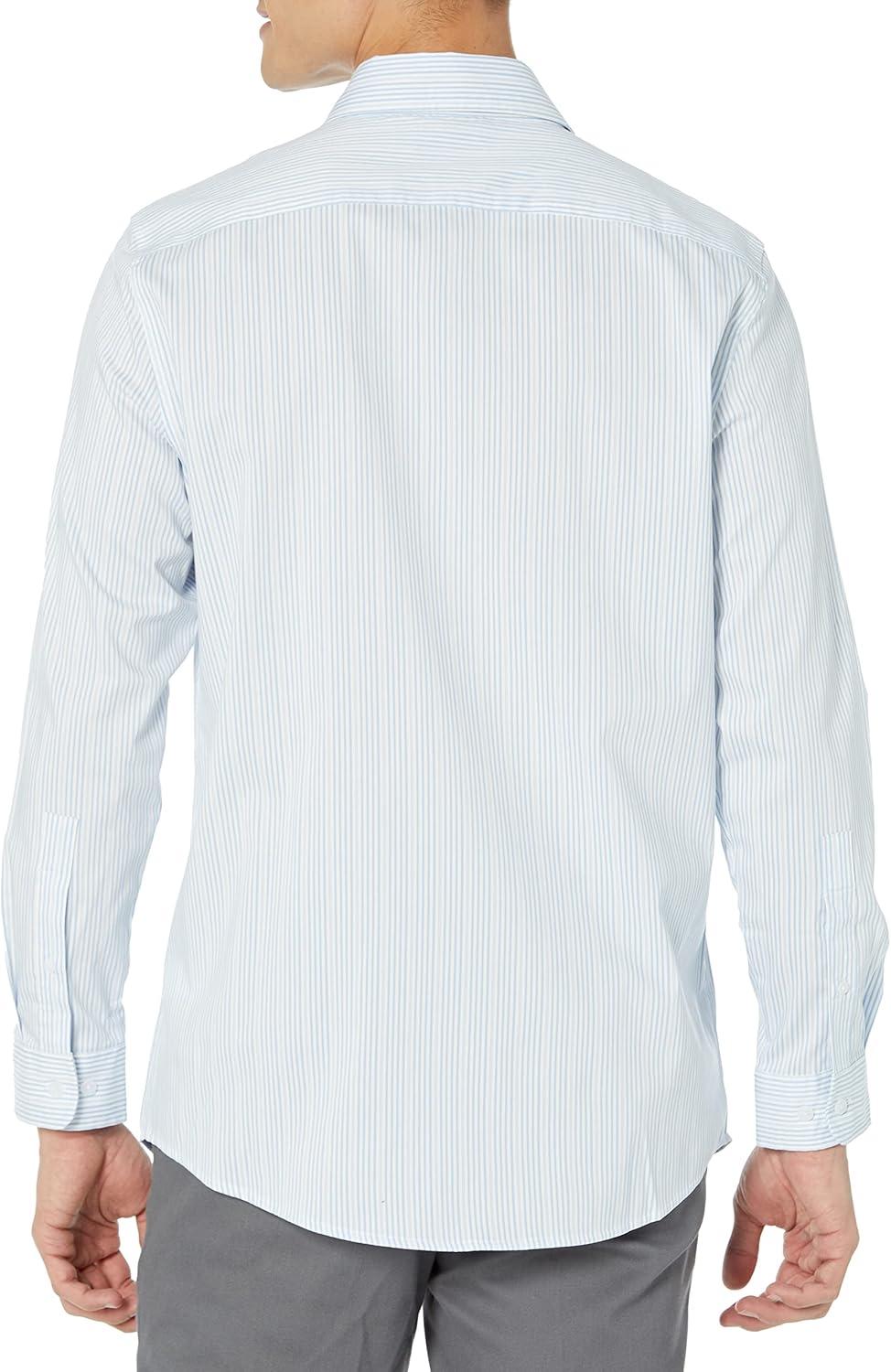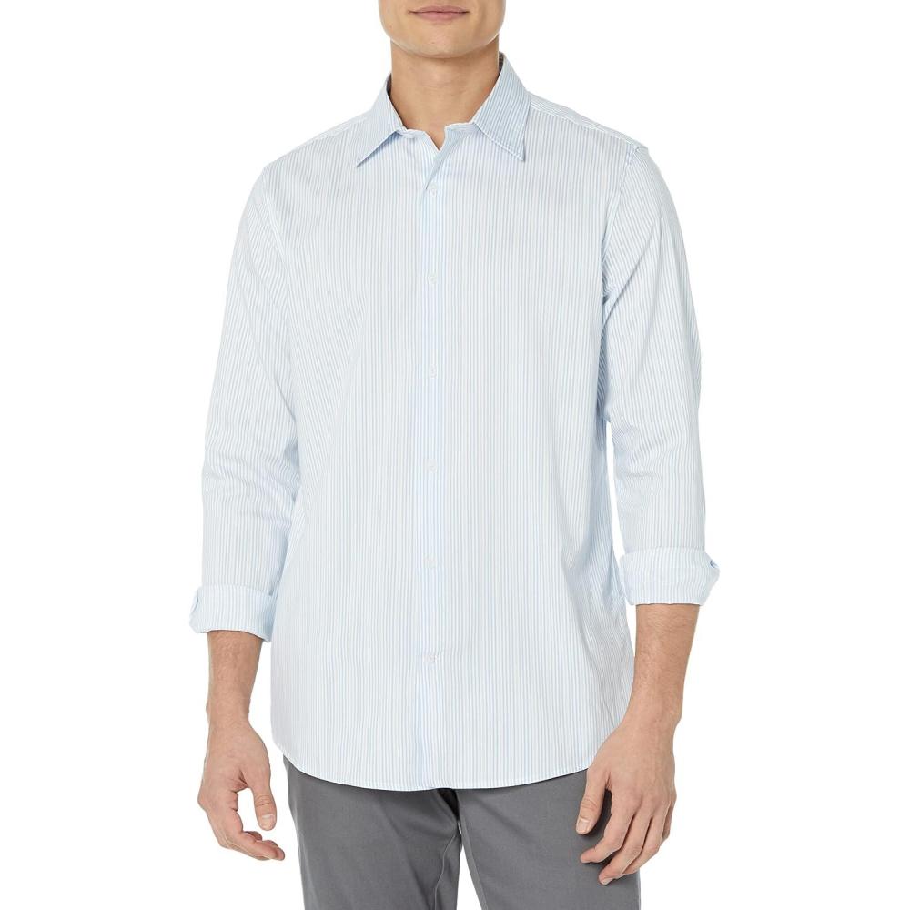 Amazon Essentials Dress Shirts, Button Down, Long Sleeve, Regular-Fit Stretch(Blue White Pinstripe)