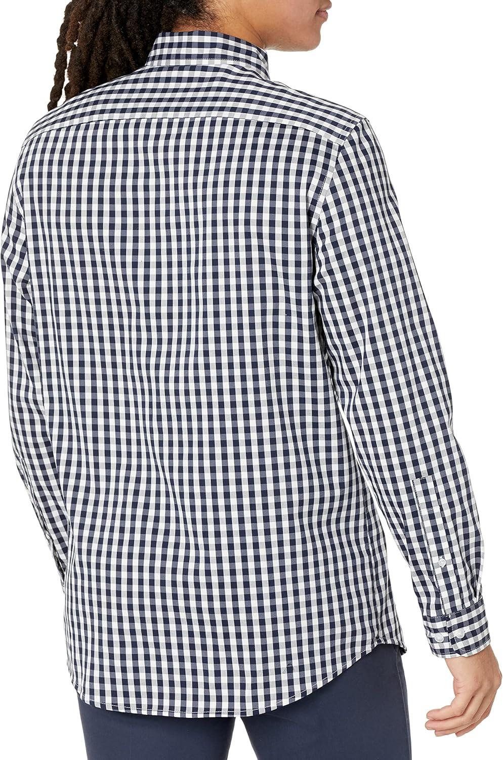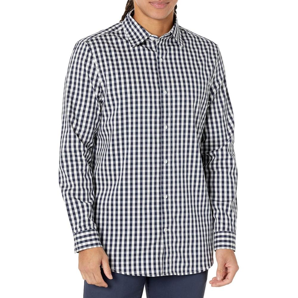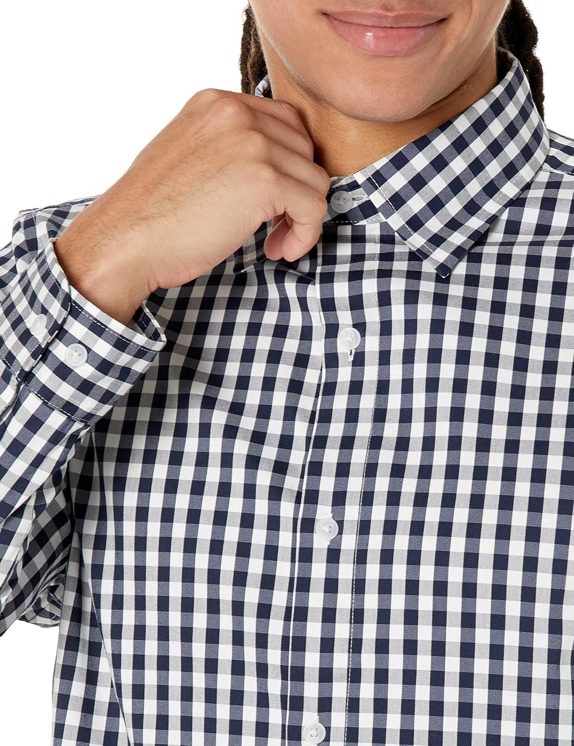 Amazon Essentials Dress Shirts, Button Down, Long Sleeve, Regular-Fit Stretch(White Gingham)