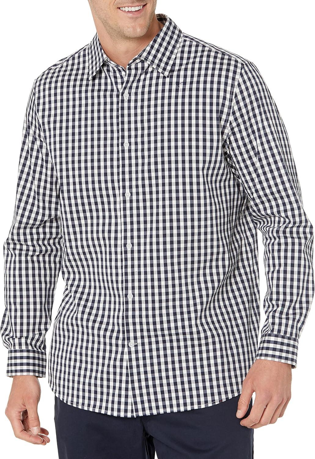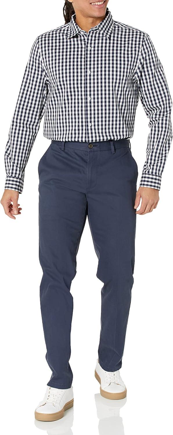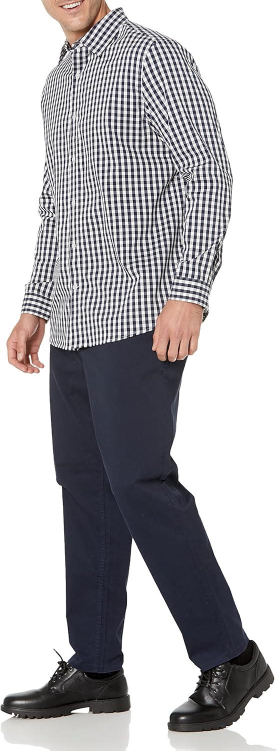 Amazon Essentials Dress Shirts, Button Down, Long Sleeve, Regular-Fit Stretch(White Gingham)