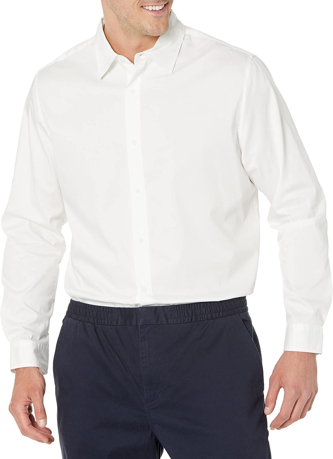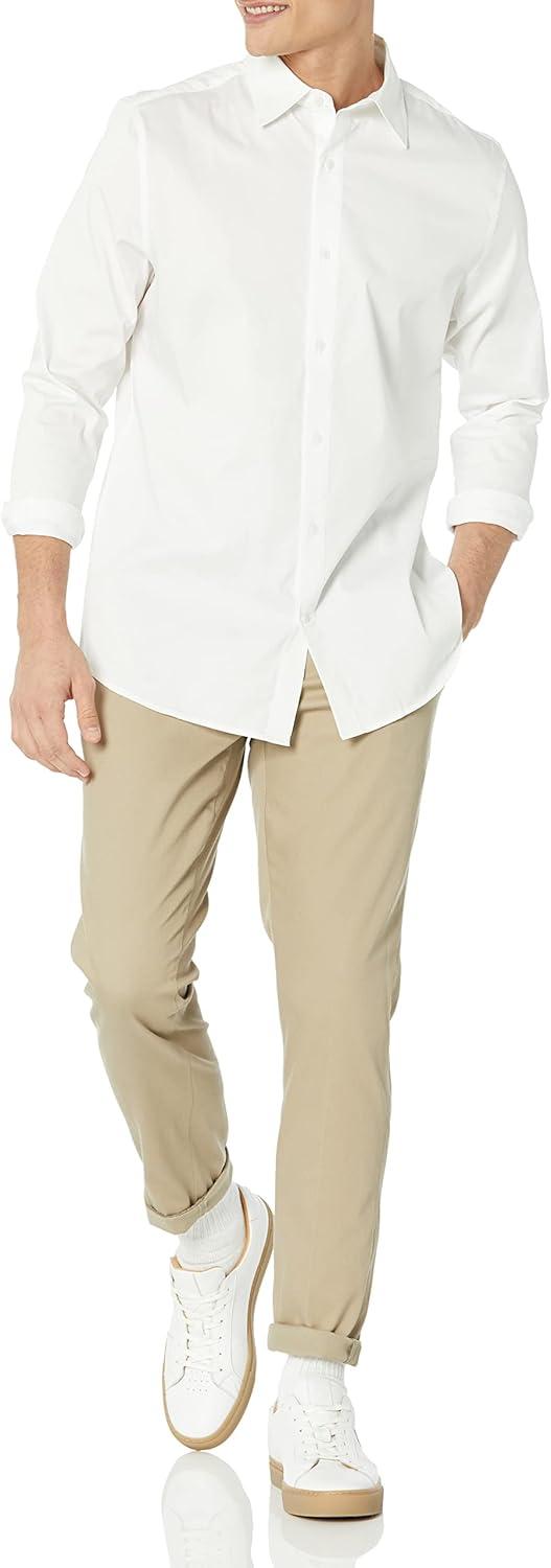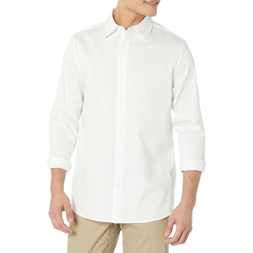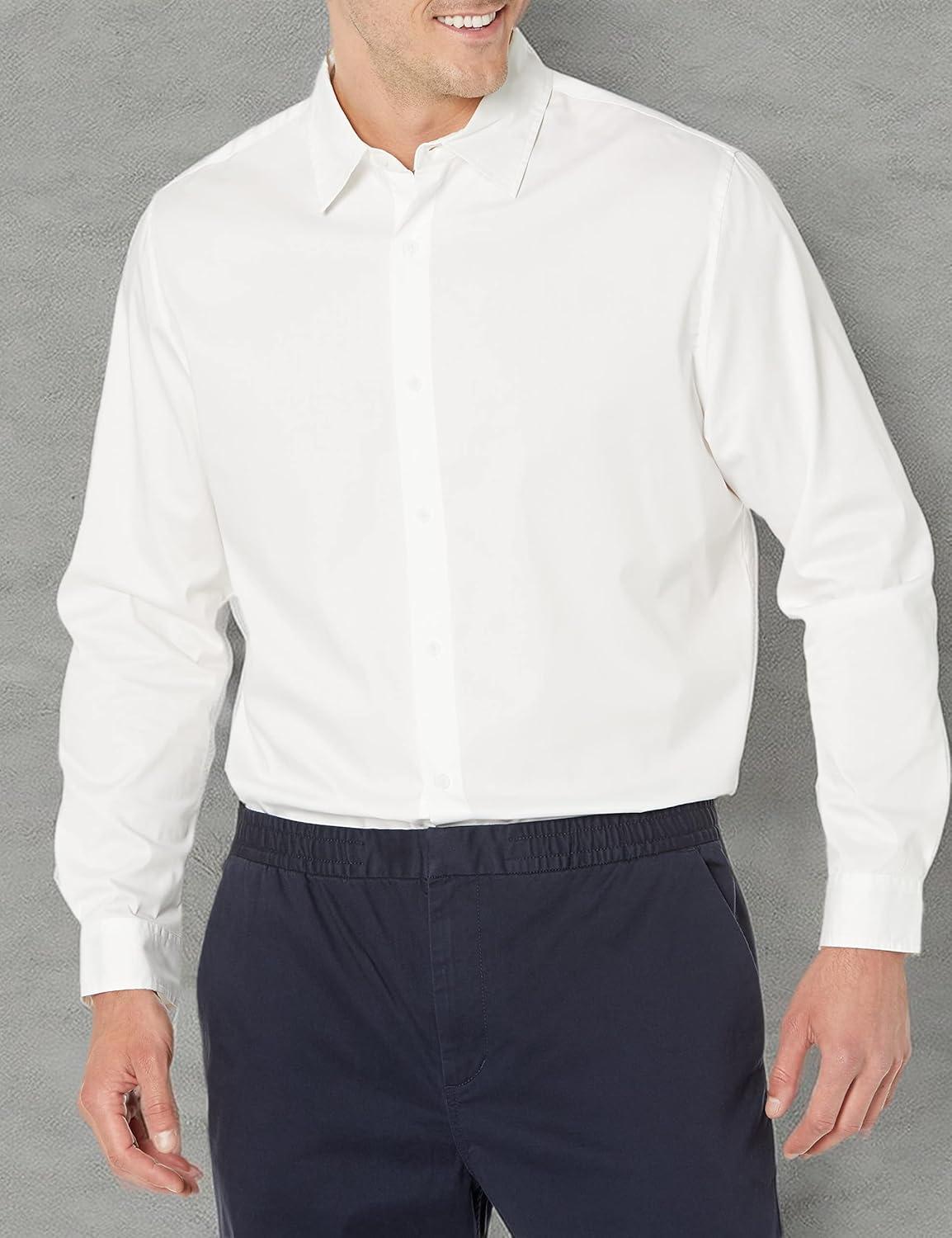 Amazon Essentials Dress Shirts, Button Down, Long Sleeve, Regular-Fit Stretch(White)