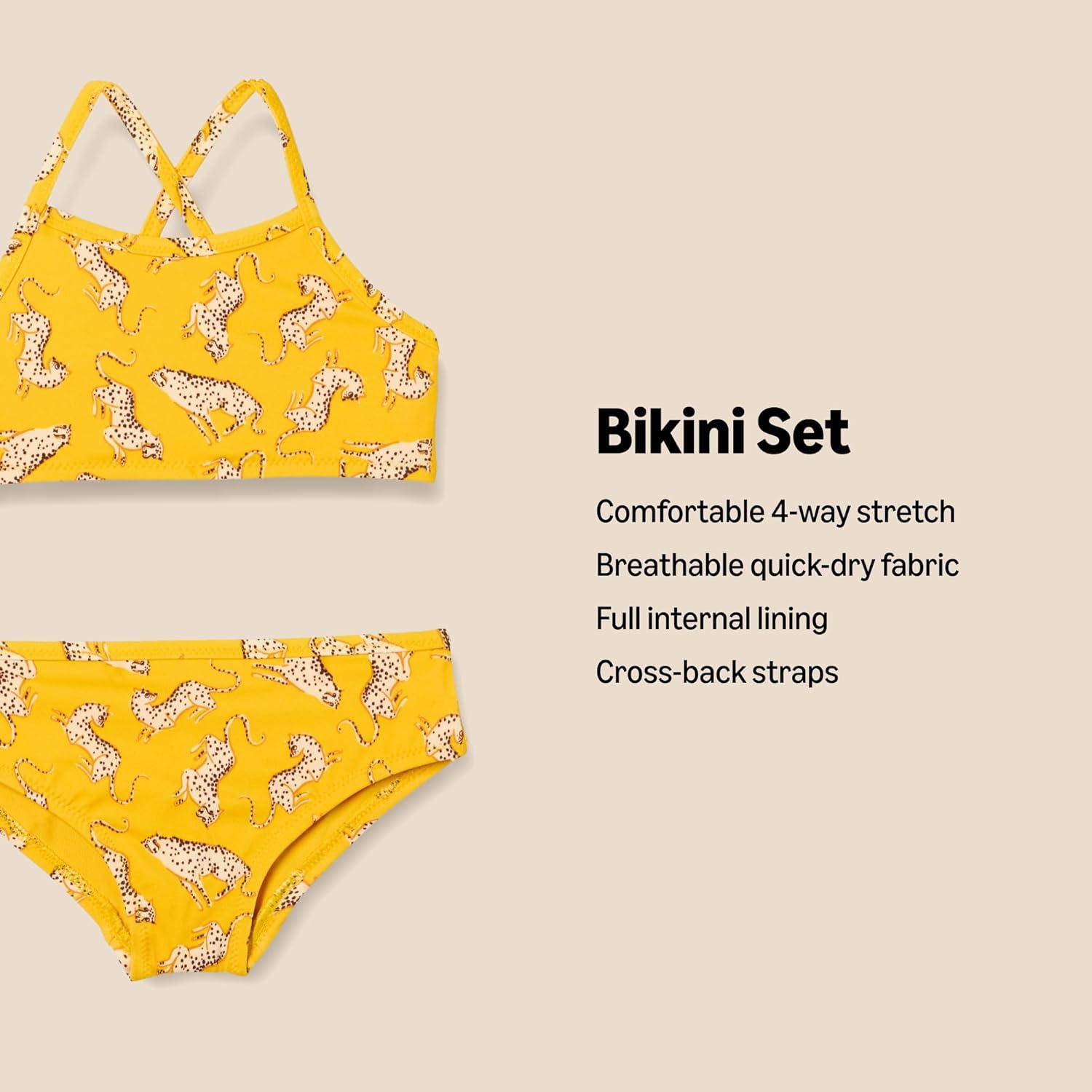 Amazon Essentials Girls and Toddlers’ Bikini Set(Golden Yellow Beige Leopard)