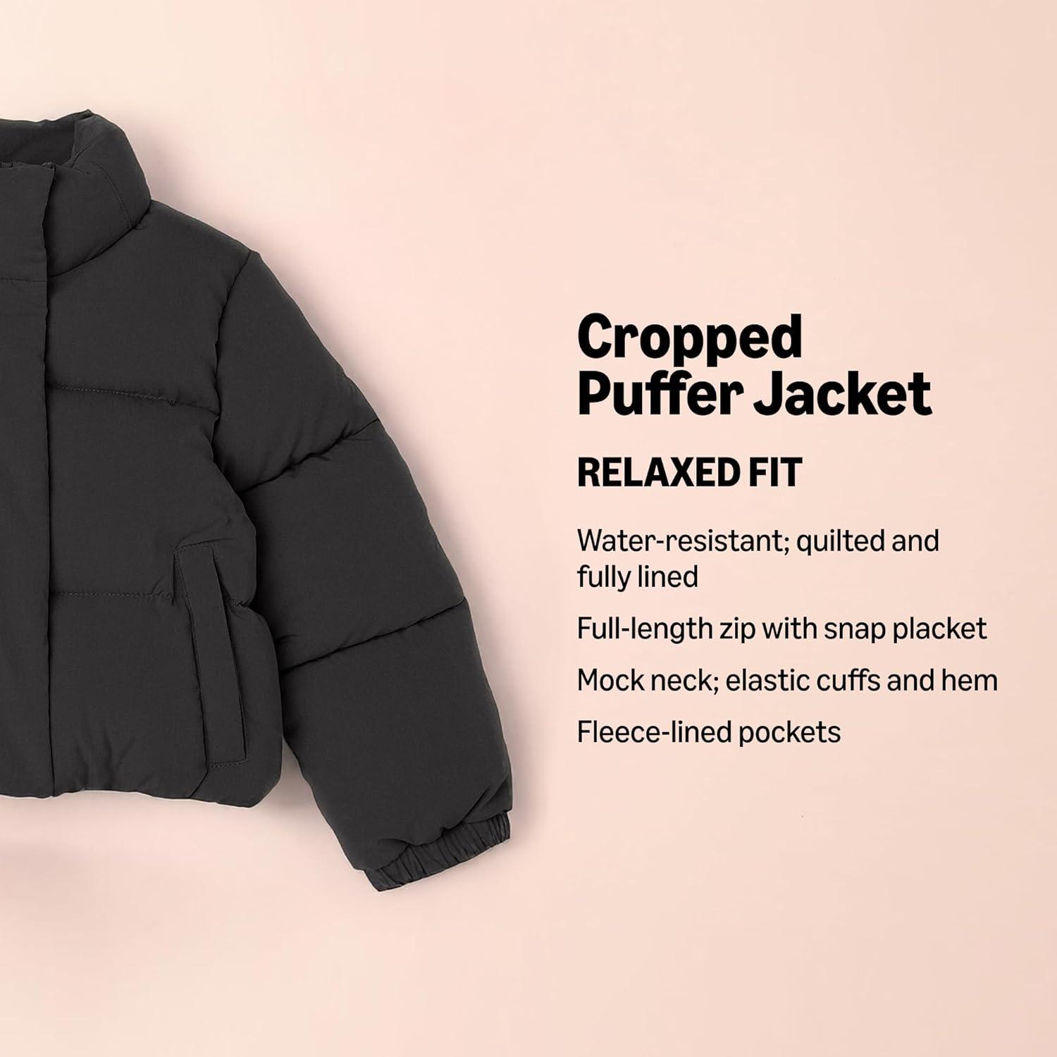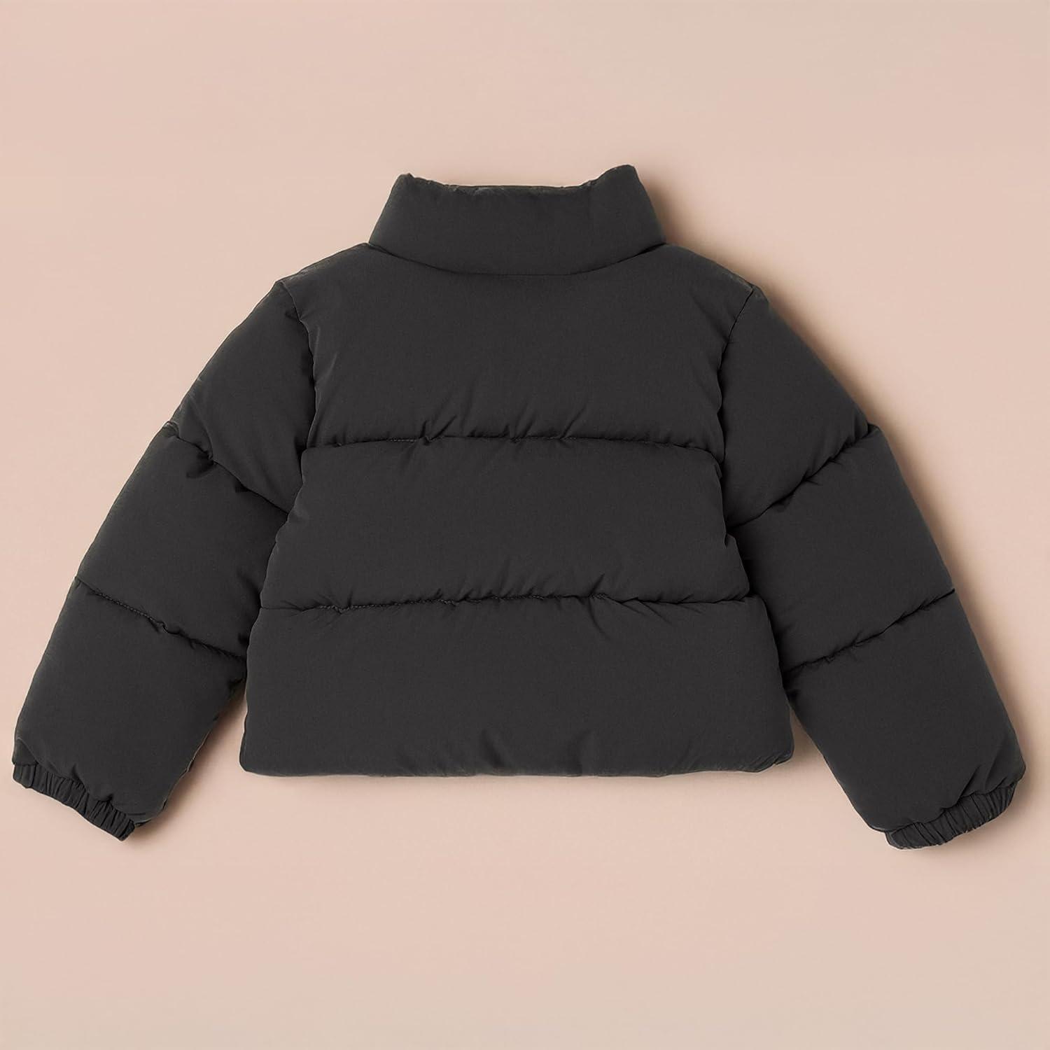 Amazon Essentials Girls and Toddlers’ Cropped Full-Zip Puffer Jacket (Quilted Matte or Sherpa Fleece)(Black)