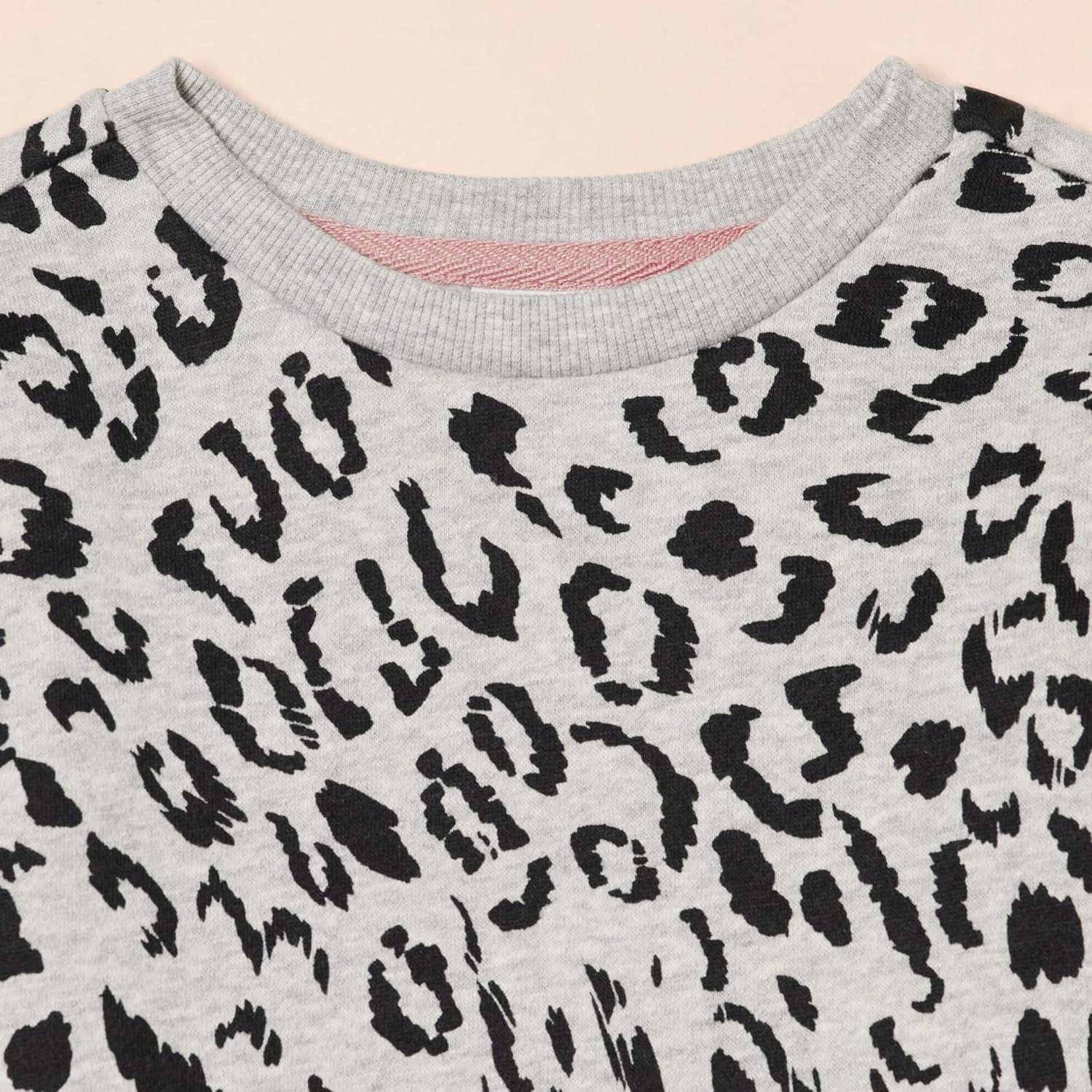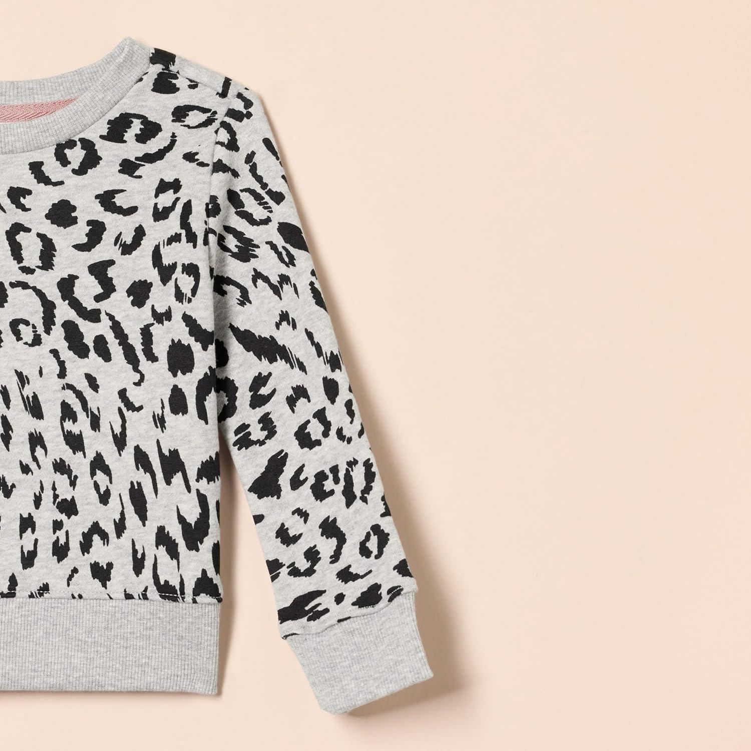 Amazon Essentials Girls and Toddlers’ Fleece Crewneck Pullover Sweatshirts, Pack of 2(Black/Light Grey Heather Leopard)