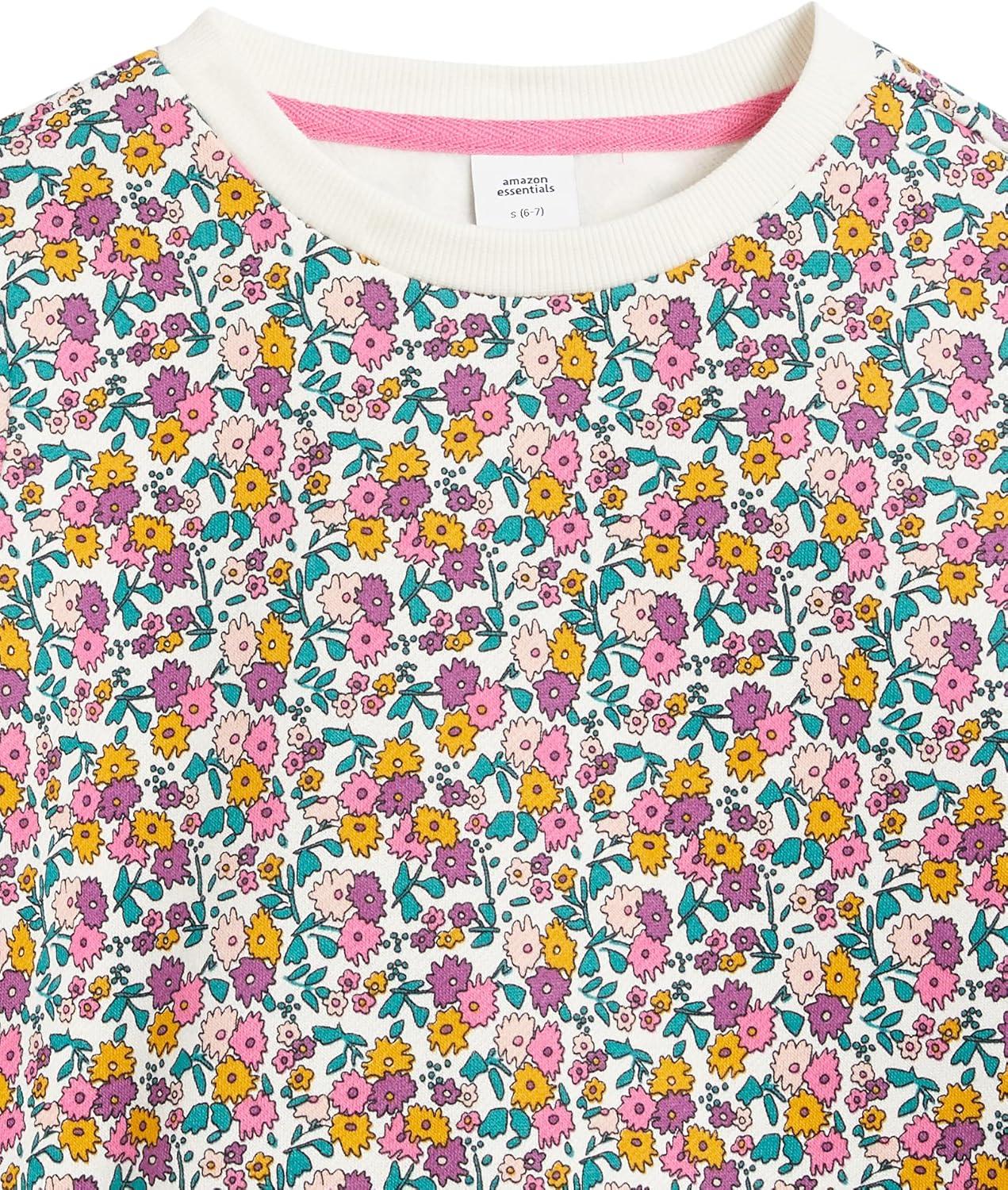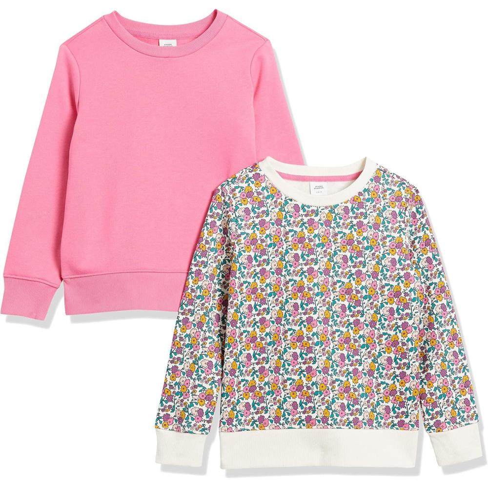 Amazon Essentials Girls and Toddlers’ Fleece Crewneck Pullover Sweatshirts, Pack of 2(Pink/White Ditsy Floral)