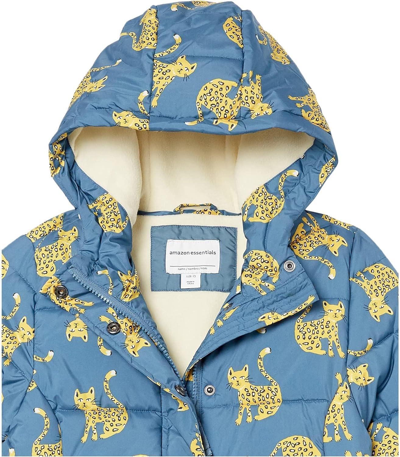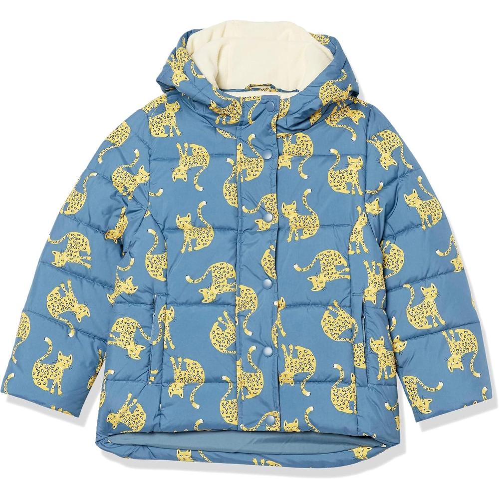 Amazon Essentials Girls and Toddlers’ Heavyweight Hooded Puffer Coat, Water-Resistant(Blue Cat)
