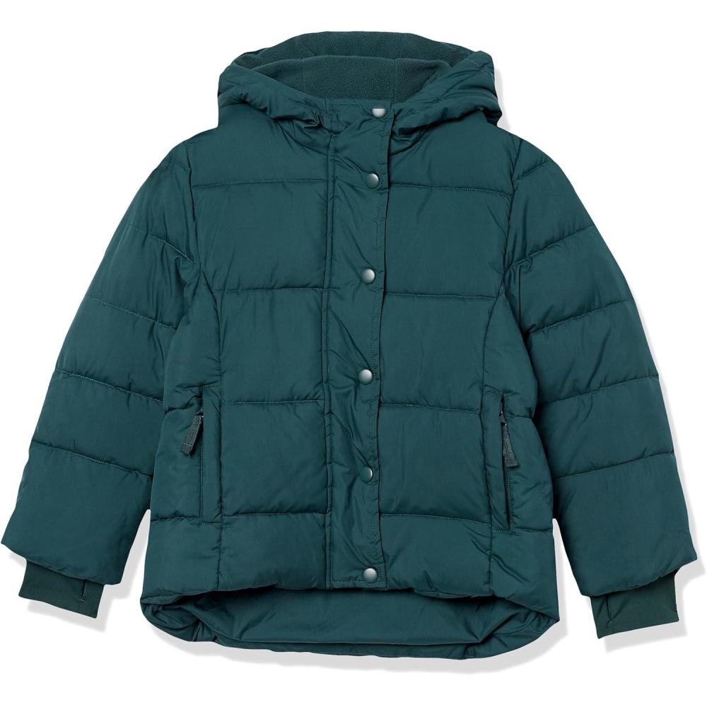 Amazon Essentials Girls and Toddlers’ Heavyweight Hooded Puffer Coat, Water-Resistant(Dark Green)