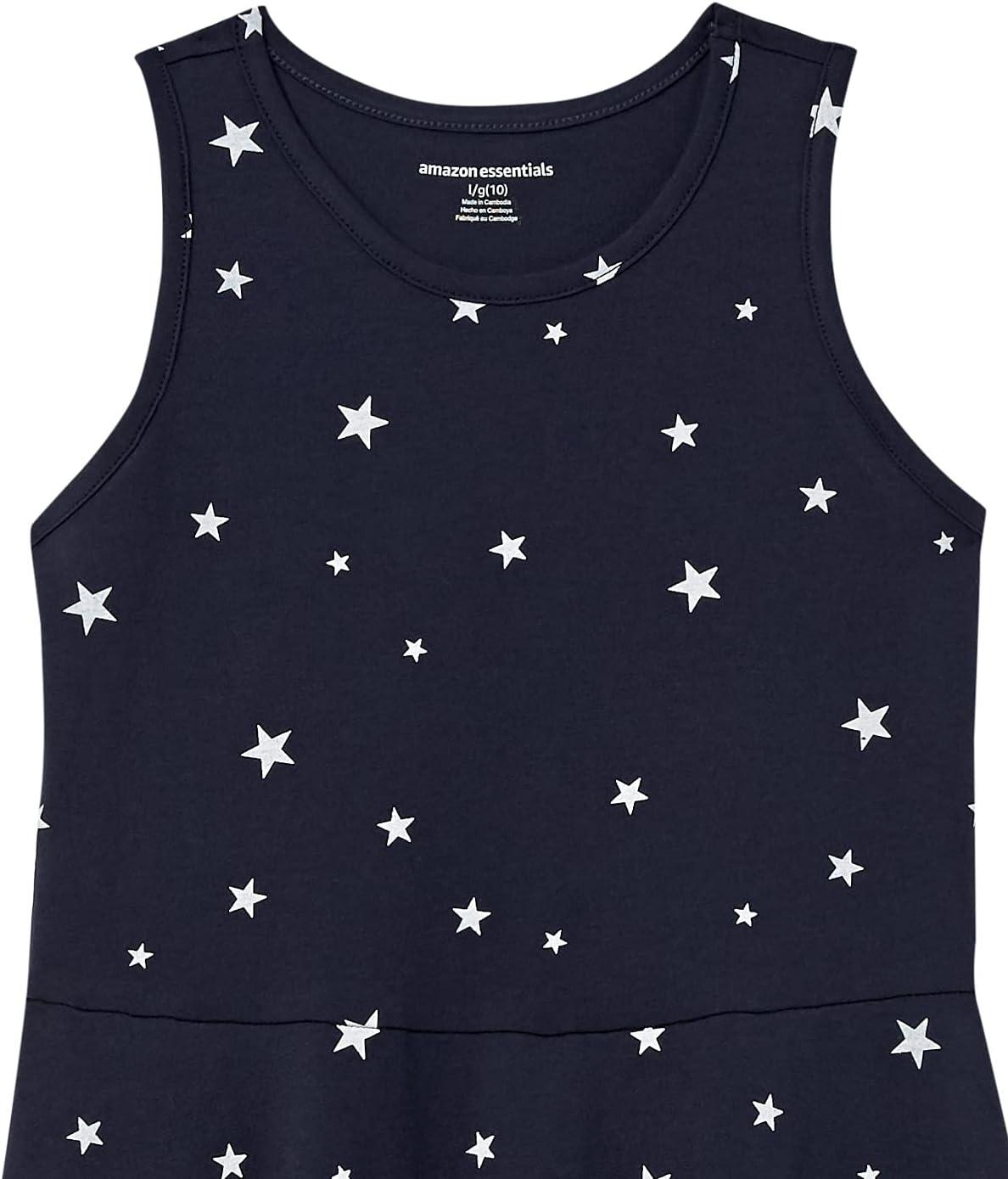 Amazon Essentials Girls and Toddlers’ Knit Sleeveless Tank Play Dress, Pack of 2(Aqua Blue/Navy Stars)