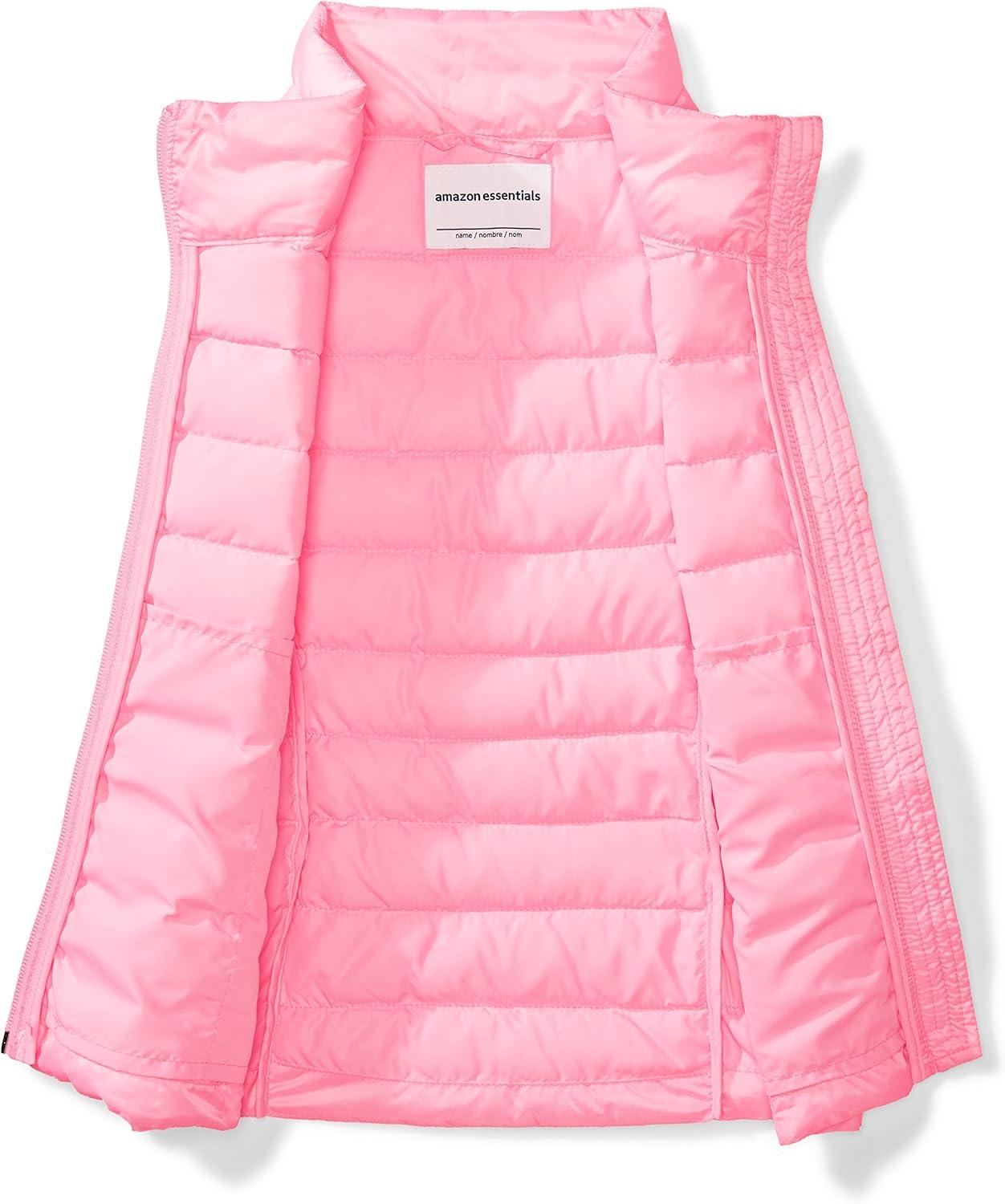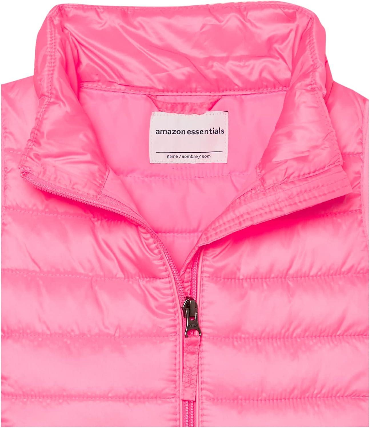 Amazon Essentials Girls and Toddlers’ Lightweight Water-Resistant Packable Puffer Vest(Neon Pink)