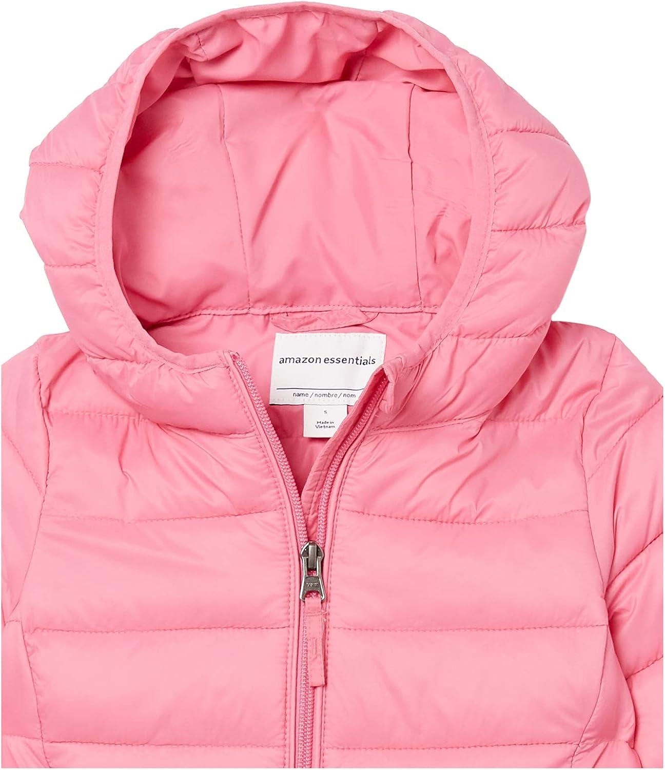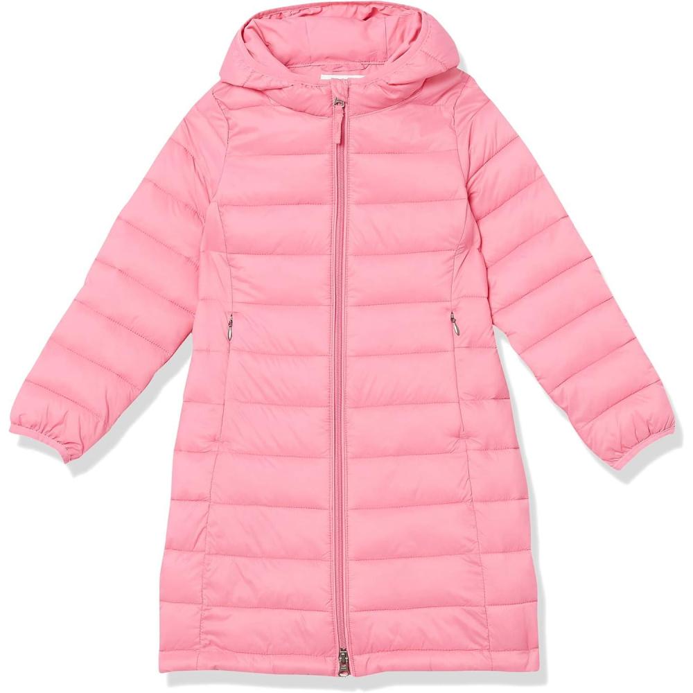 Amazon Essentials Girls and Toddlers’ Long Lightweight Hooded Puffer Jacket(Bright Pink)