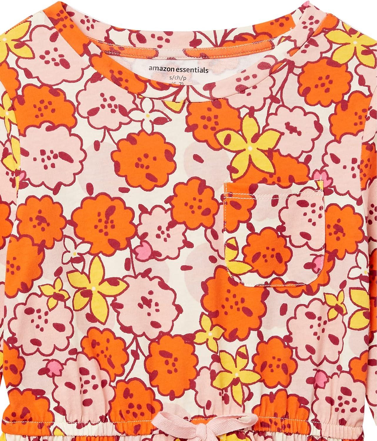 Amazon Essentials Girls and Toddlers' Long-Sleeve Elastic Waist T-Shirt Dress(Orange Ditsy/Pink Floral)