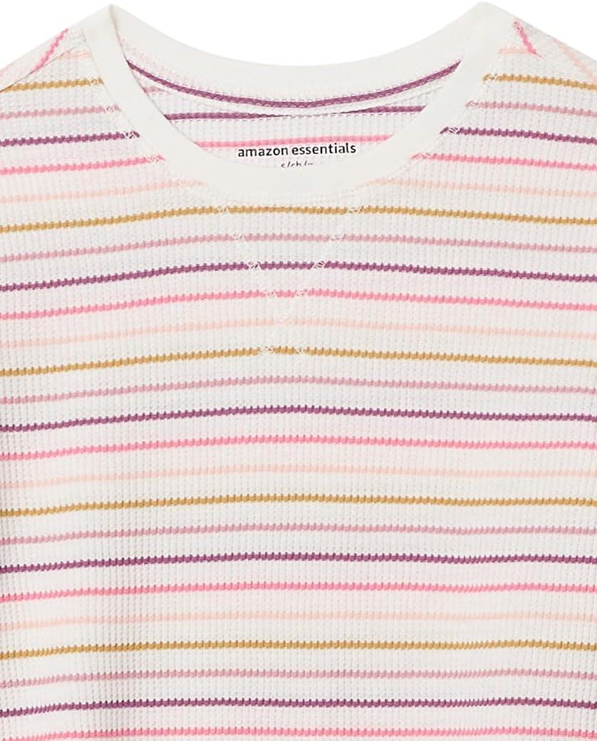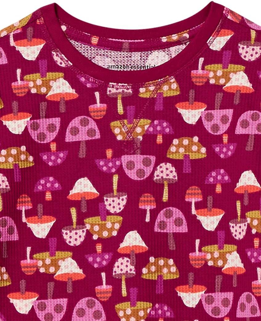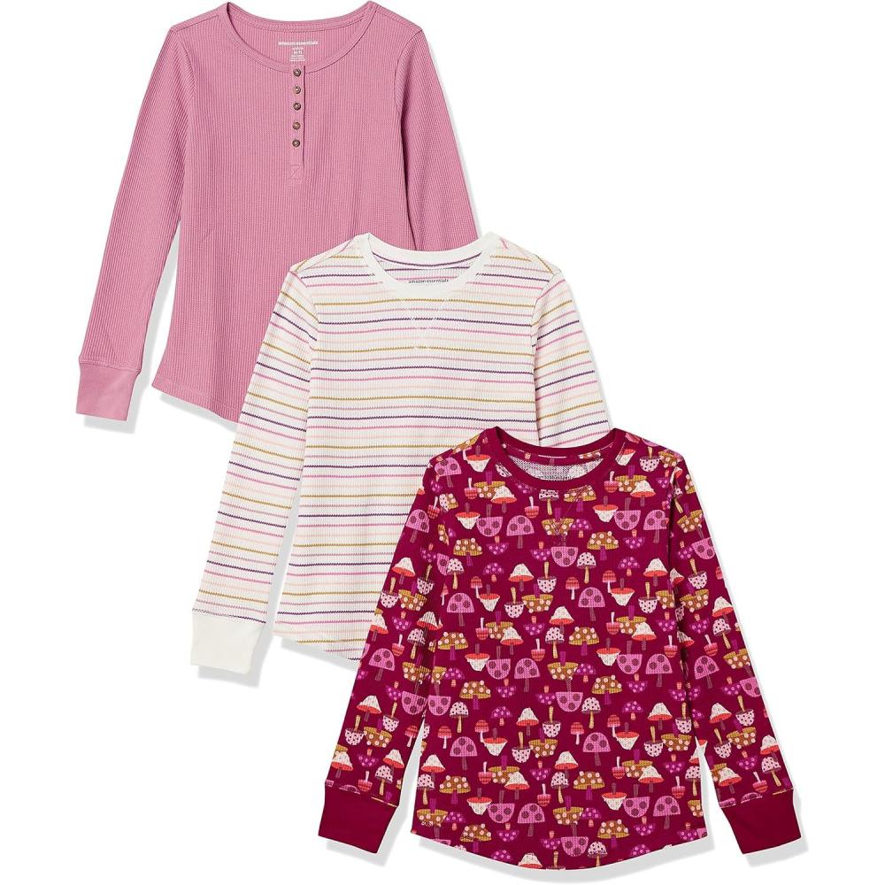 Amazon Essentials Girls and Toddlers’ Long-Sleeve Knit Thermal T-Shirt, Pack of 3(Burgundy Mushroom/Pink/White Stripe)