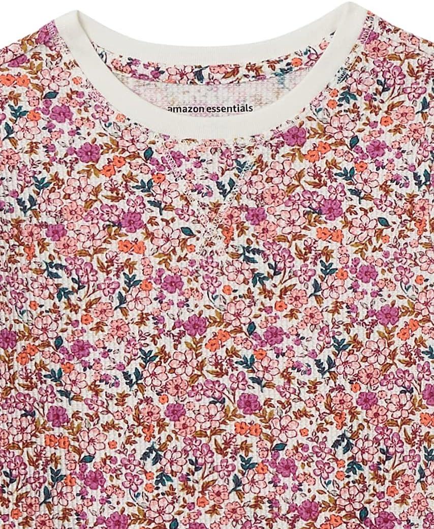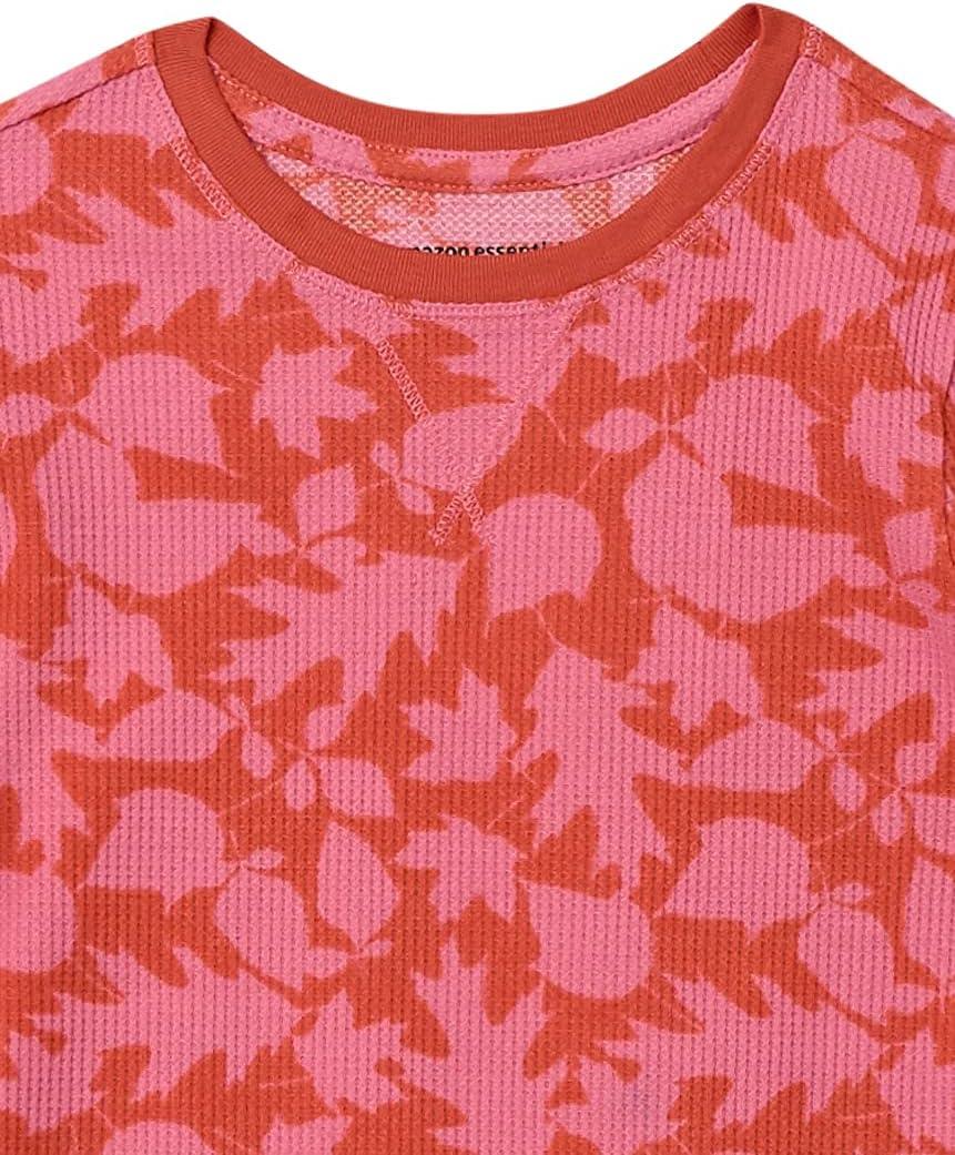 Amazon Essentials Girls and Toddlers’ Long-Sleeve Knit Thermal T-Shirt, Pack of 3(Light Pink/Red Leaf/White Floral)