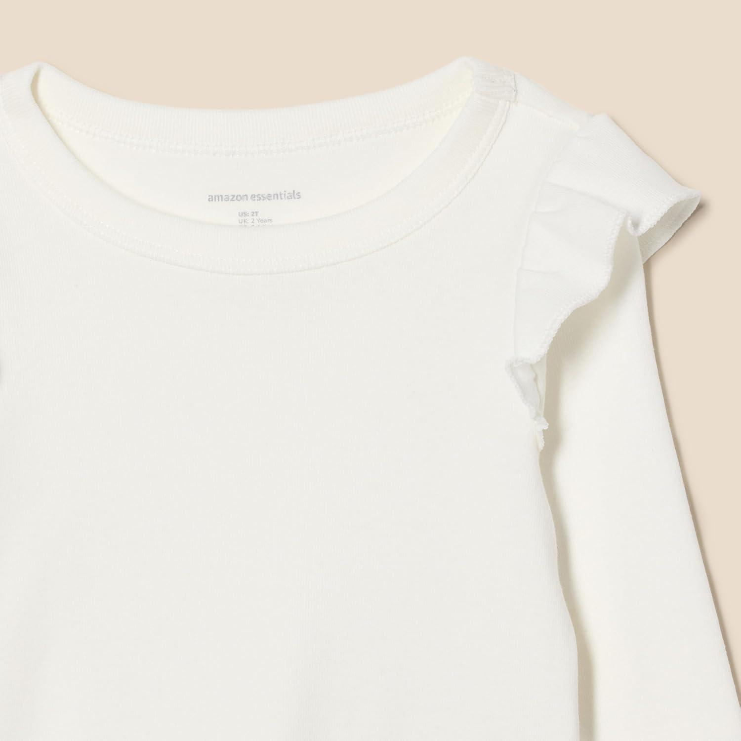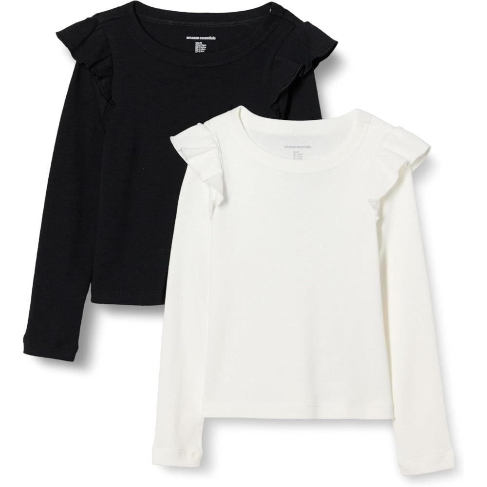 Amazon Essentials Girls and Toddlers’ Long Sleeve Ruffle T-Shirt, Pack of 2(Black/Ivory)