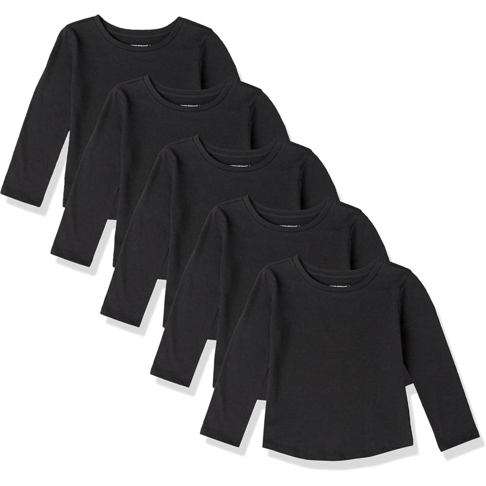 Amazon Essentials Girls and Toddlers’ Long-Sleeve T-Shirts, Multipacks(Black)