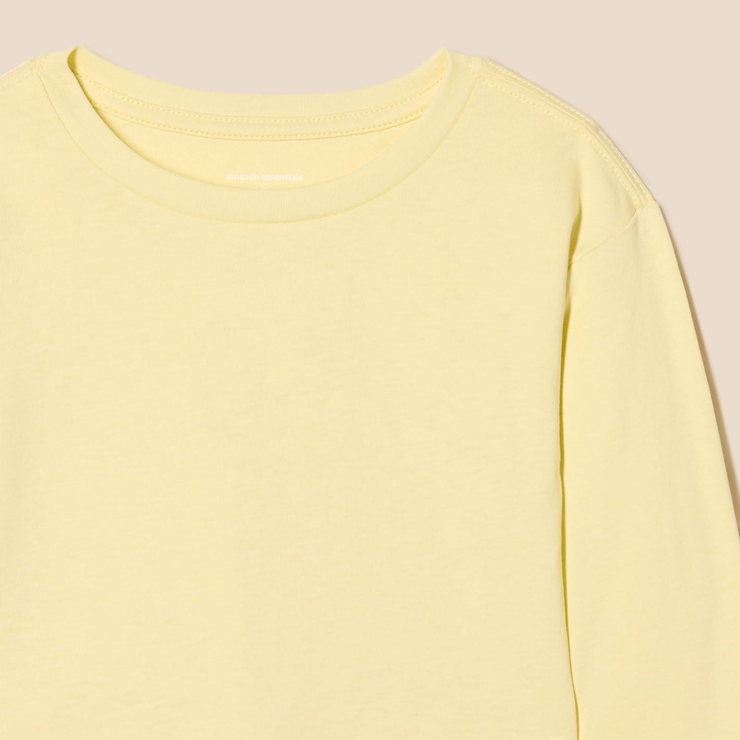 Amazon Essentials Girls and Toddlers’ Long Sleeve T Shirts, Pack of 3(Beige/Pastel Yellow/White)