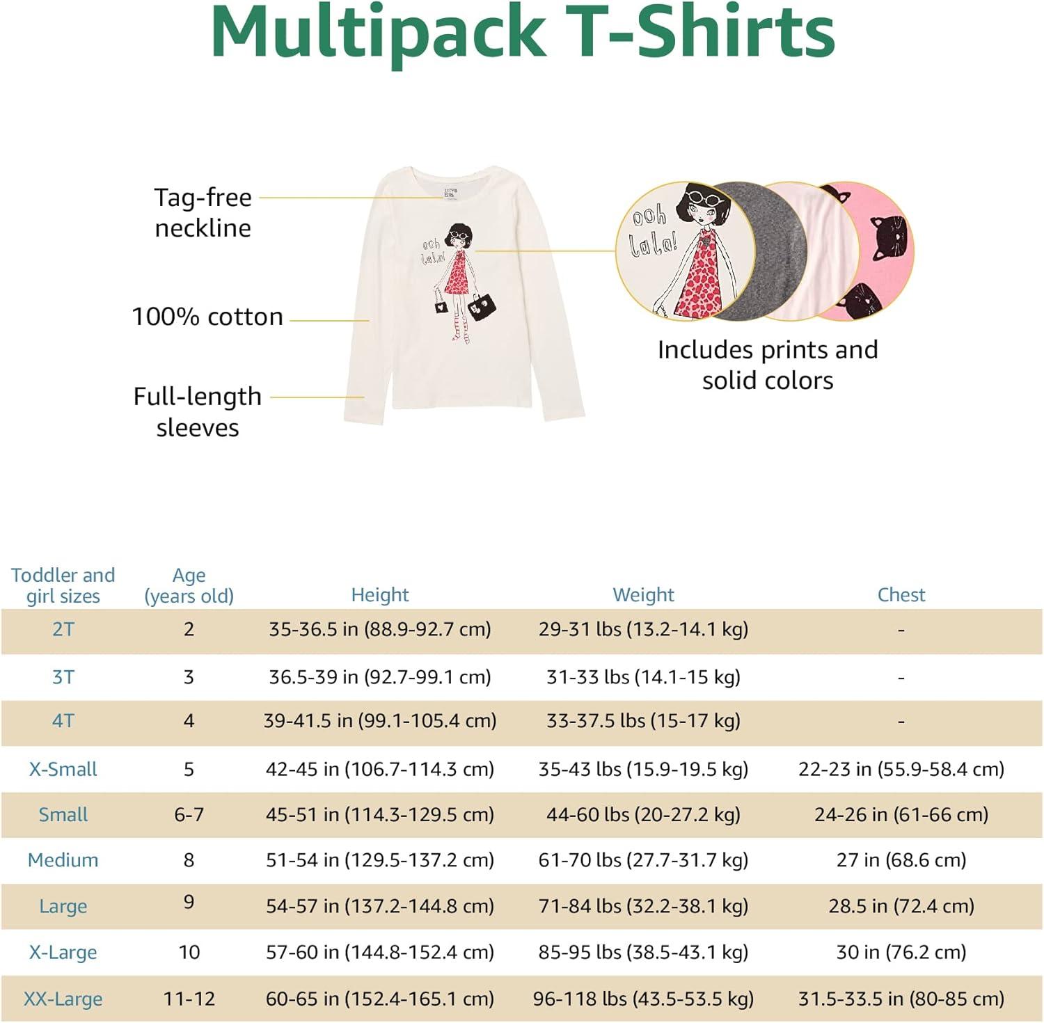 Amazon Essentials Girls and Toddlers’ Long-Sleeve T-Shirts (Previously Spotted Zebra), Multipacks(Multicolor/Stars)