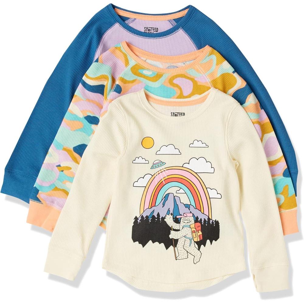 imageAmazon Essentials Girls and Toddlers LongSleeve Thermal TShirt Tops Previously Spotted Zebra MultipacksCamoMonster