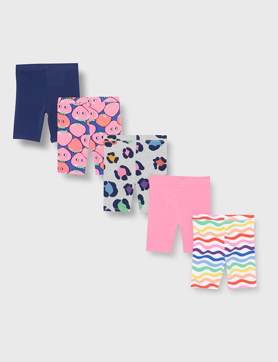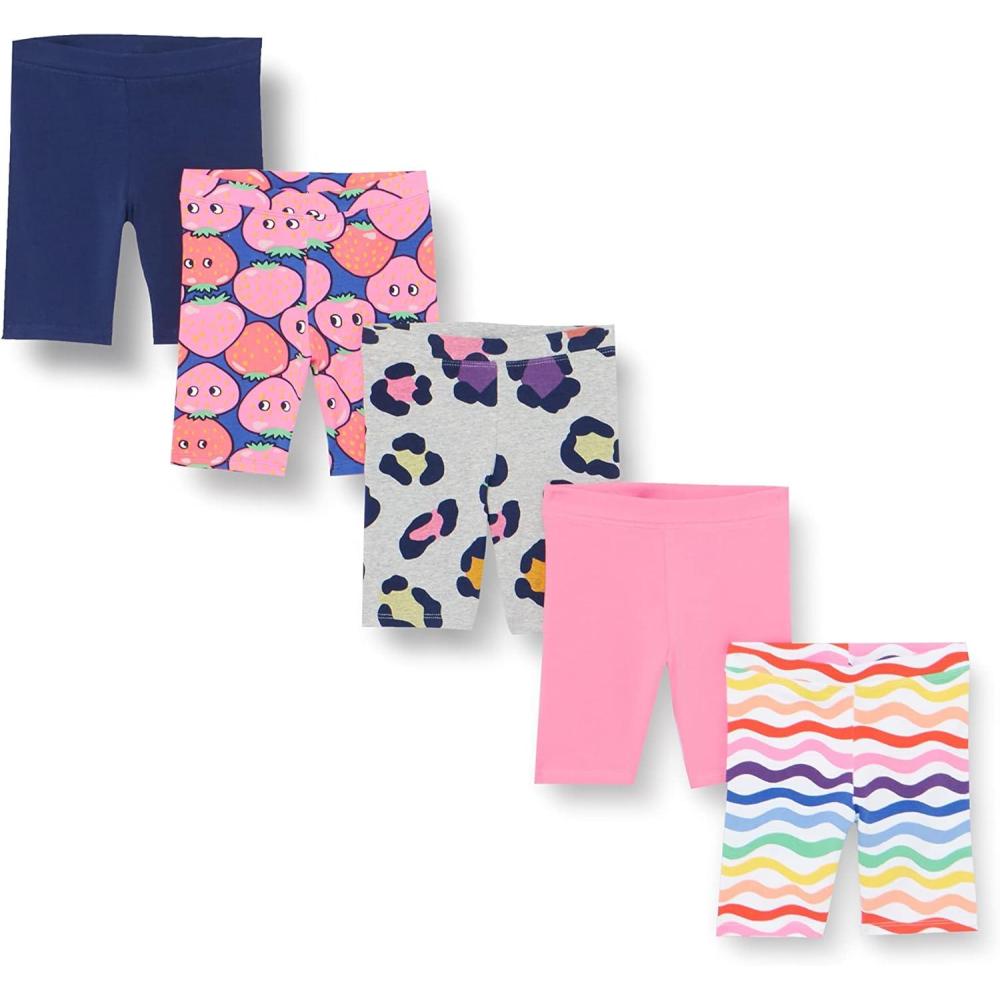 Amazon Essentials Girls and Toddlers’ Midi Bike Shorts (Previously Spotted Zebra), Pack of 5(Blue Strawberries/Grey Cheetah/Navy/Pink/White Rainbow Print)