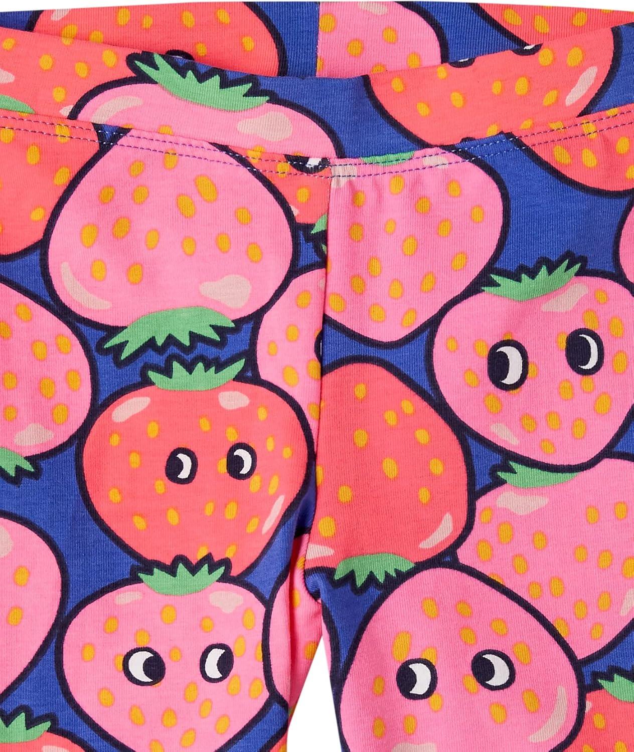 Amazon Essentials Girls and Toddlers' Midi Bike Shorts (Previously Spotted Zebra), Pack of 5(Blue Strawberries/Grey Cheetah/Navy/Pink/White Rainbow Print)