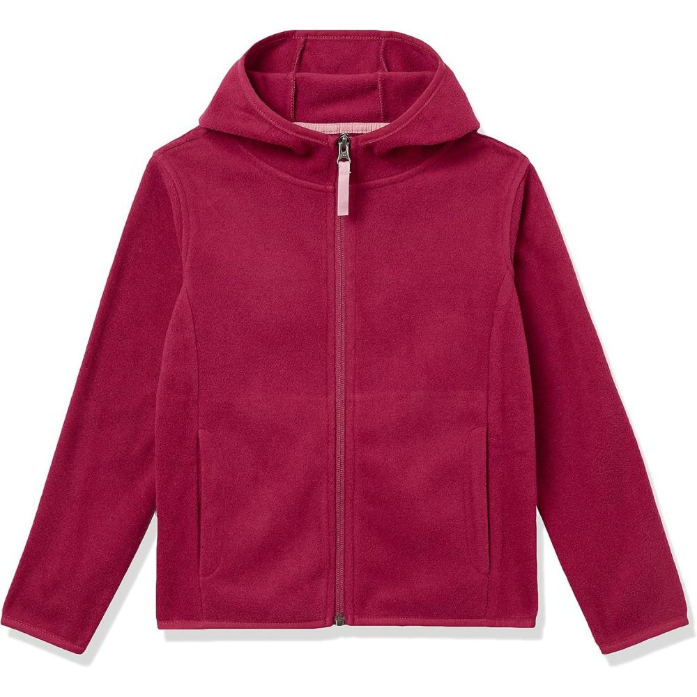 Amazon Essentials Girls and Toddlers’ Polar Fleece Full-Zip Hooded Lightweight Jacket(Cranberry Red)