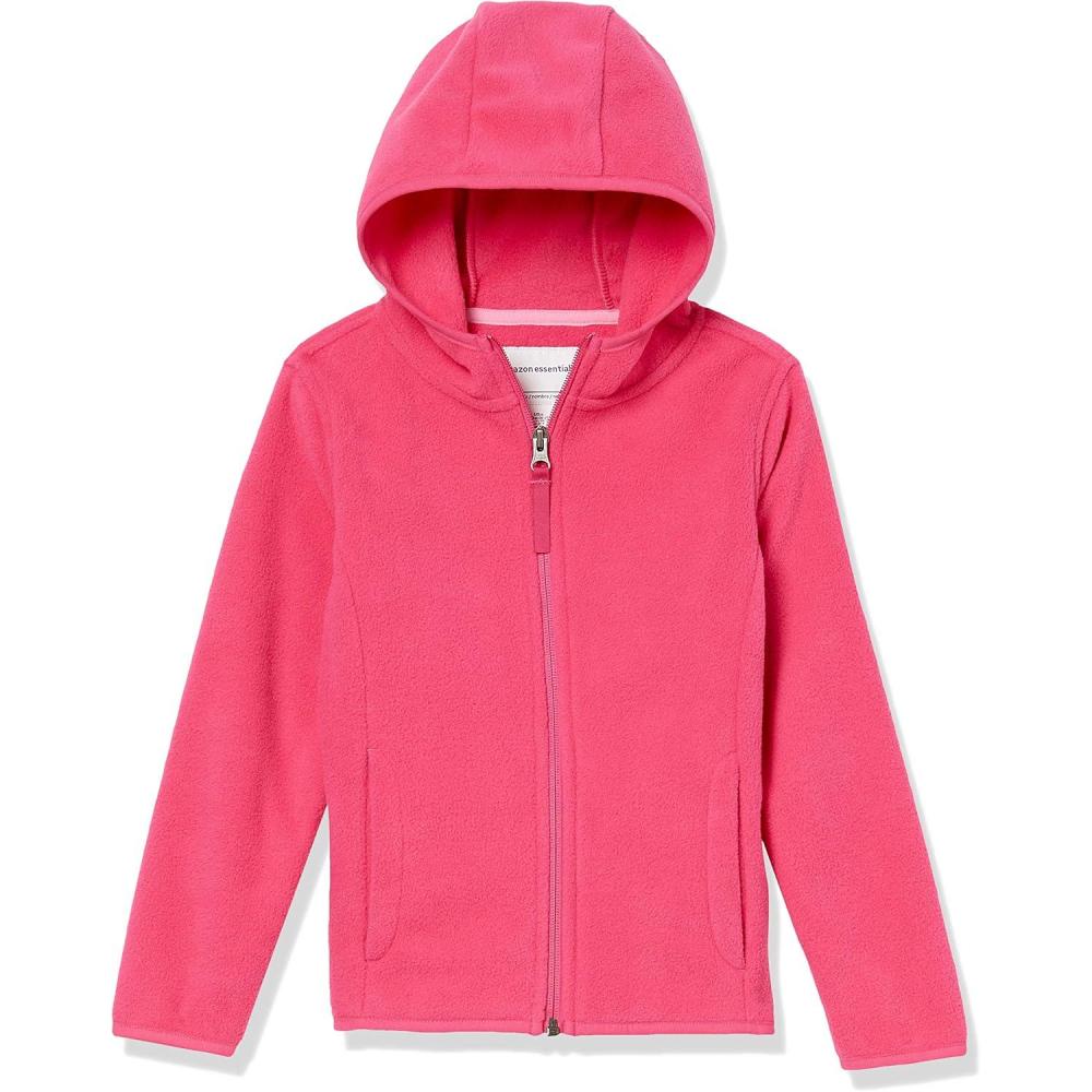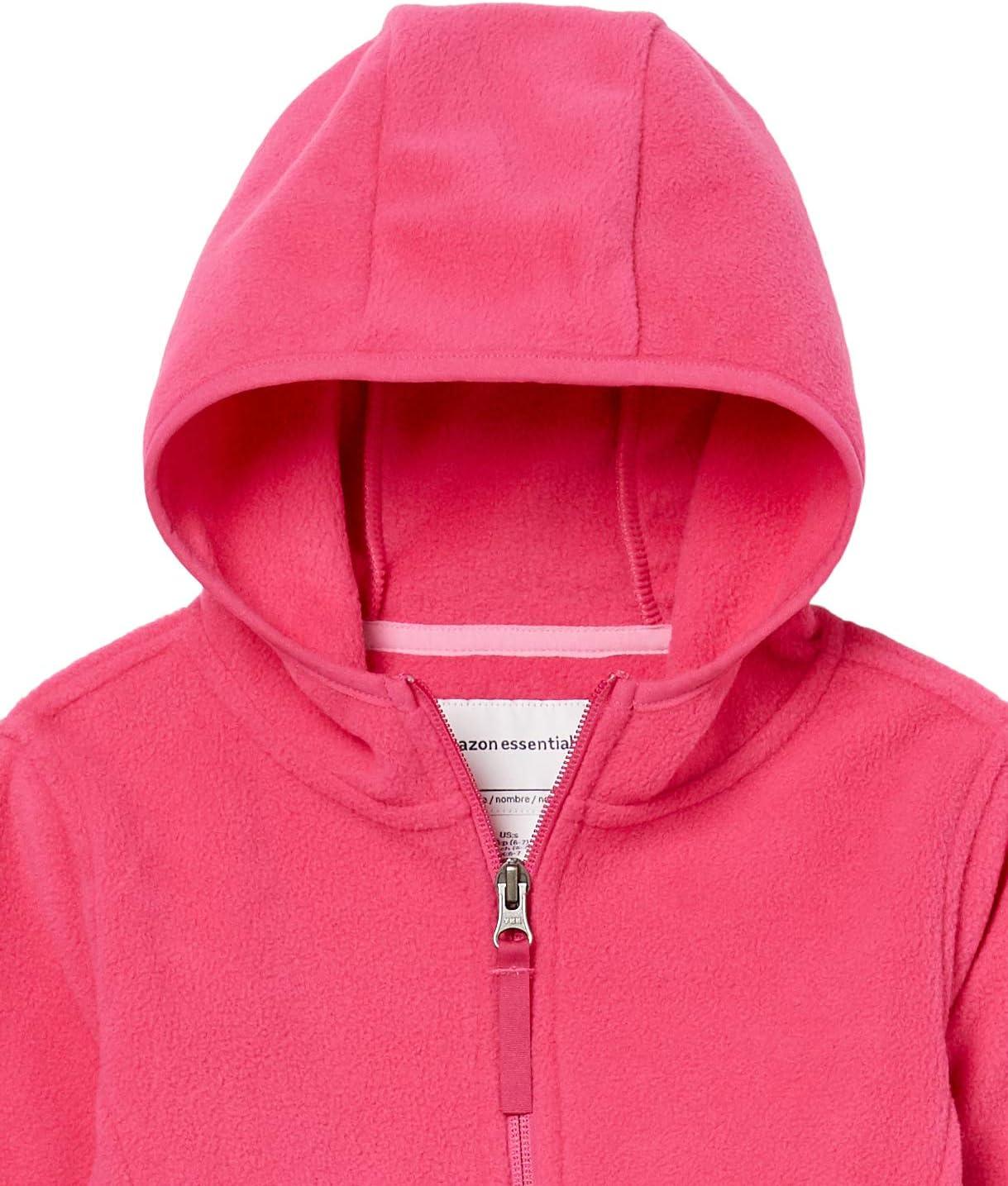 Amazon Essentials Girls and Toddlers’ Polar Fleece Full-Zip Hooded Lightweight Jacket(Dark Pink)
