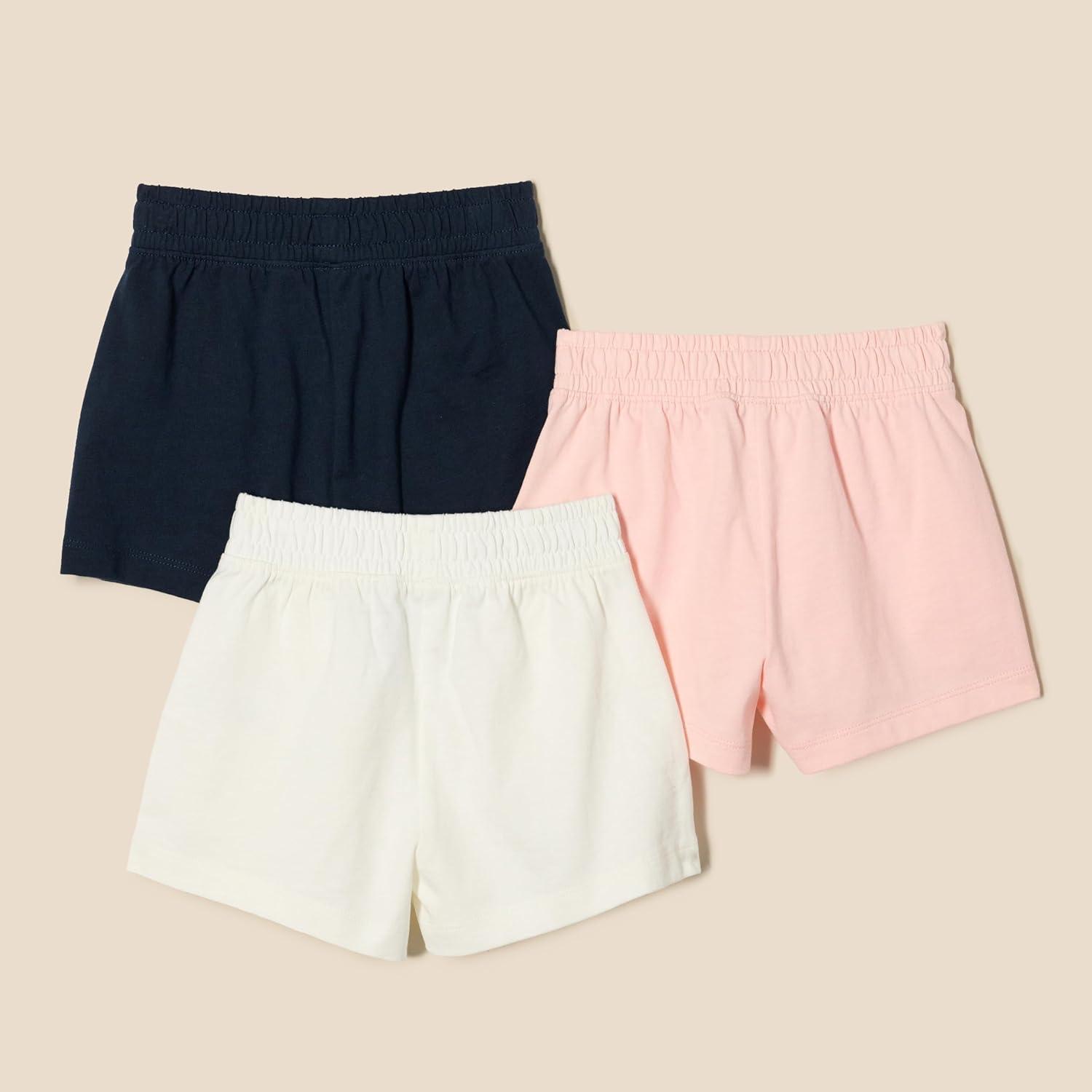 Amazon Essentials Girls and Toddlers’ Pull-On Shorts, Pack of 3(Ivory/Navy/Pink)