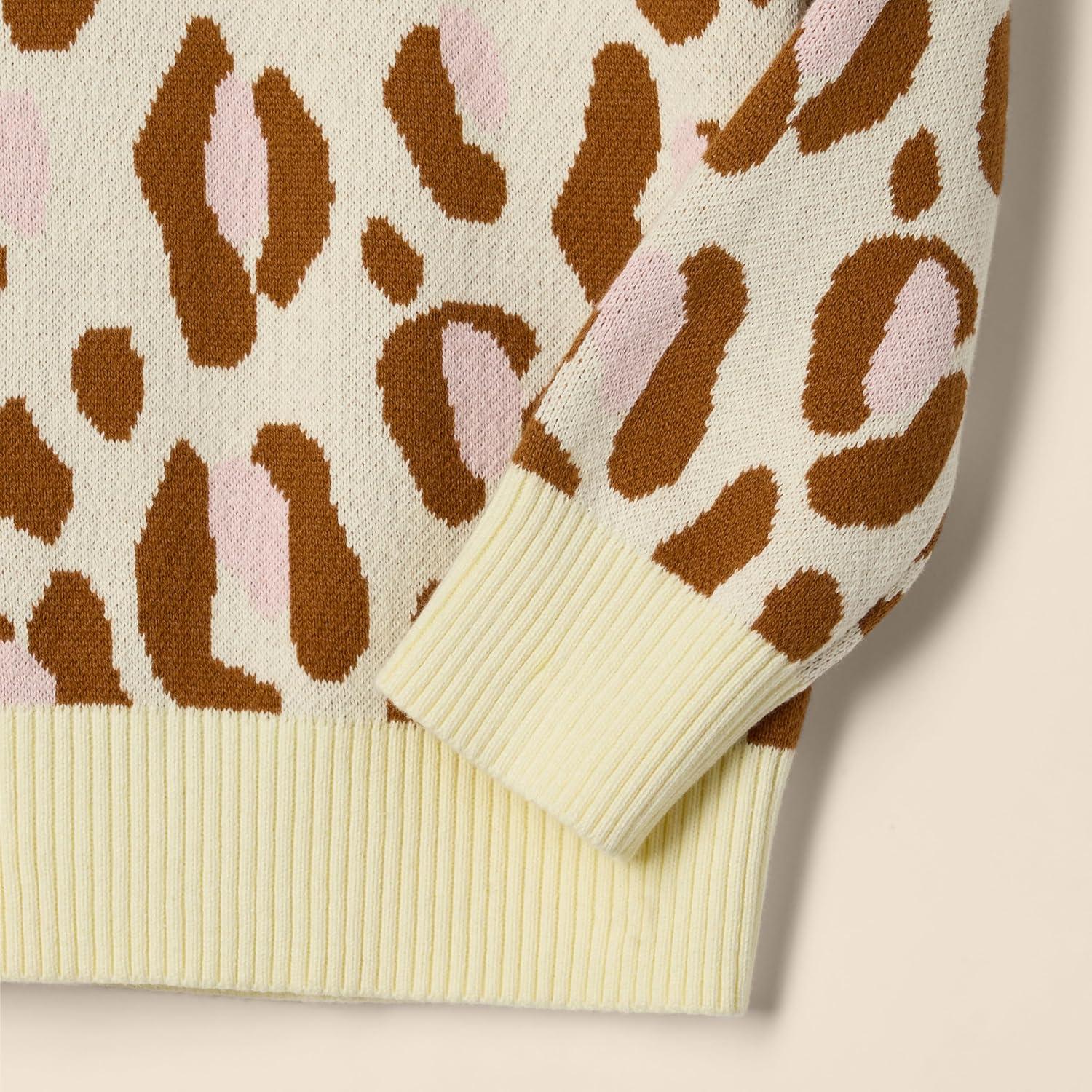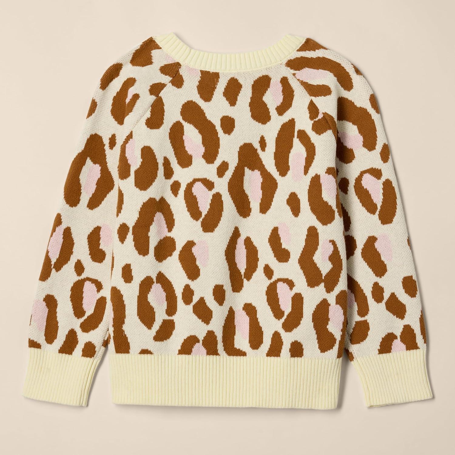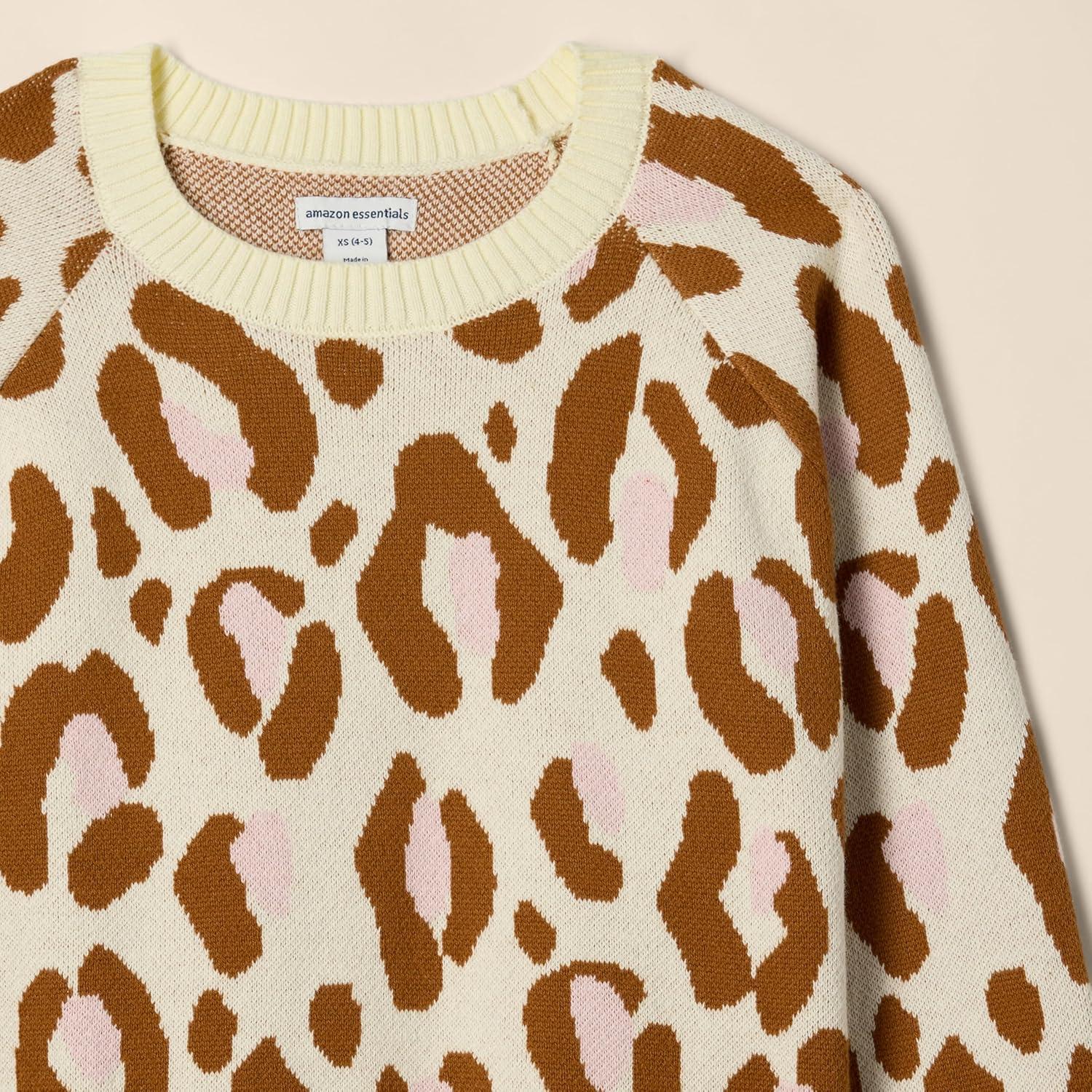 Amazon Essentials Girls and Toddlers’ Pullover Crewneck Sweater(Ivory Leopard)