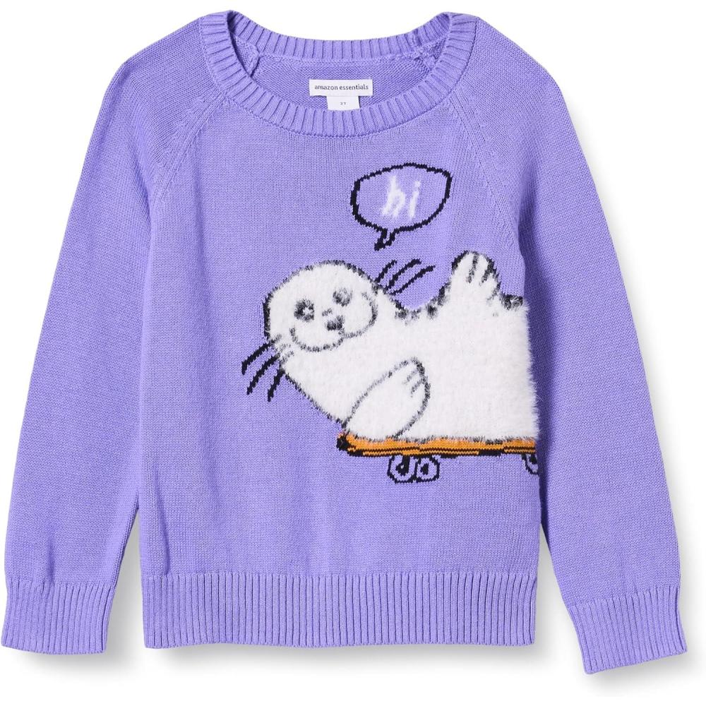 Amazon Essentials Girls and Toddlers’ Pullover Crewneck Sweater(Purple Seal)