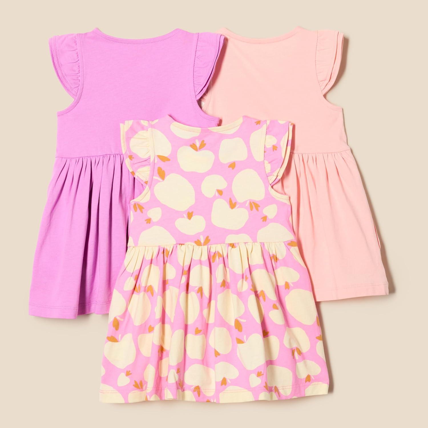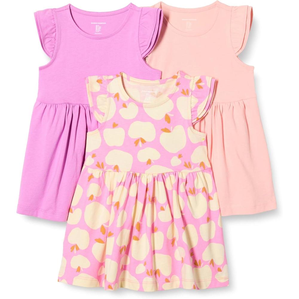Amazon Essentials Girls and Toddlers’ Ruffle Jersey Tunic, Pack of 3(Mauve/Pink/Apples)