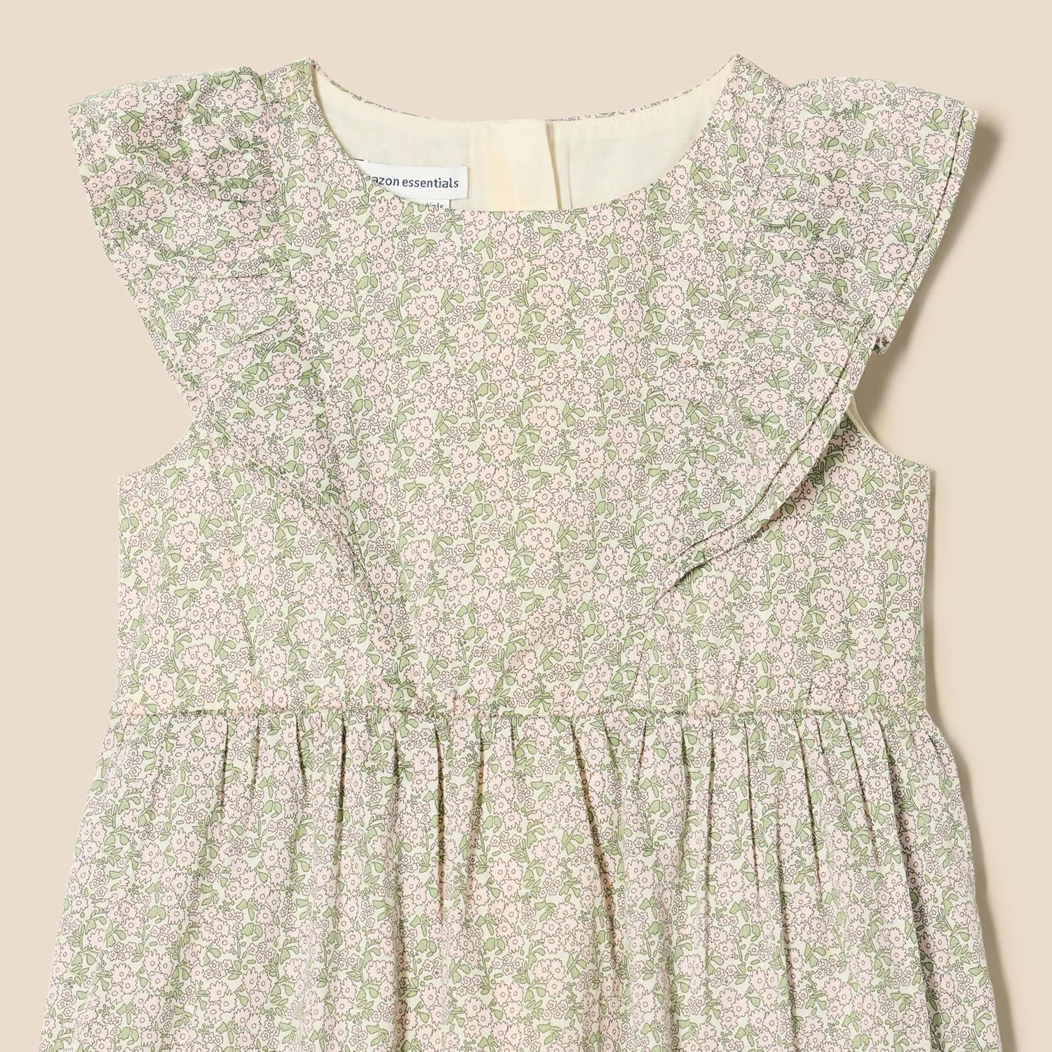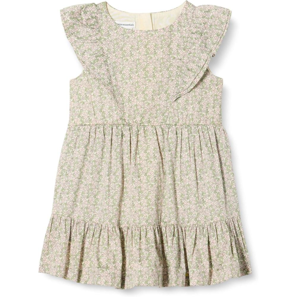 Amazon Essentials Girls and Toddlers’ Ruffle Woven Dress(Ivory Posey Floral)
