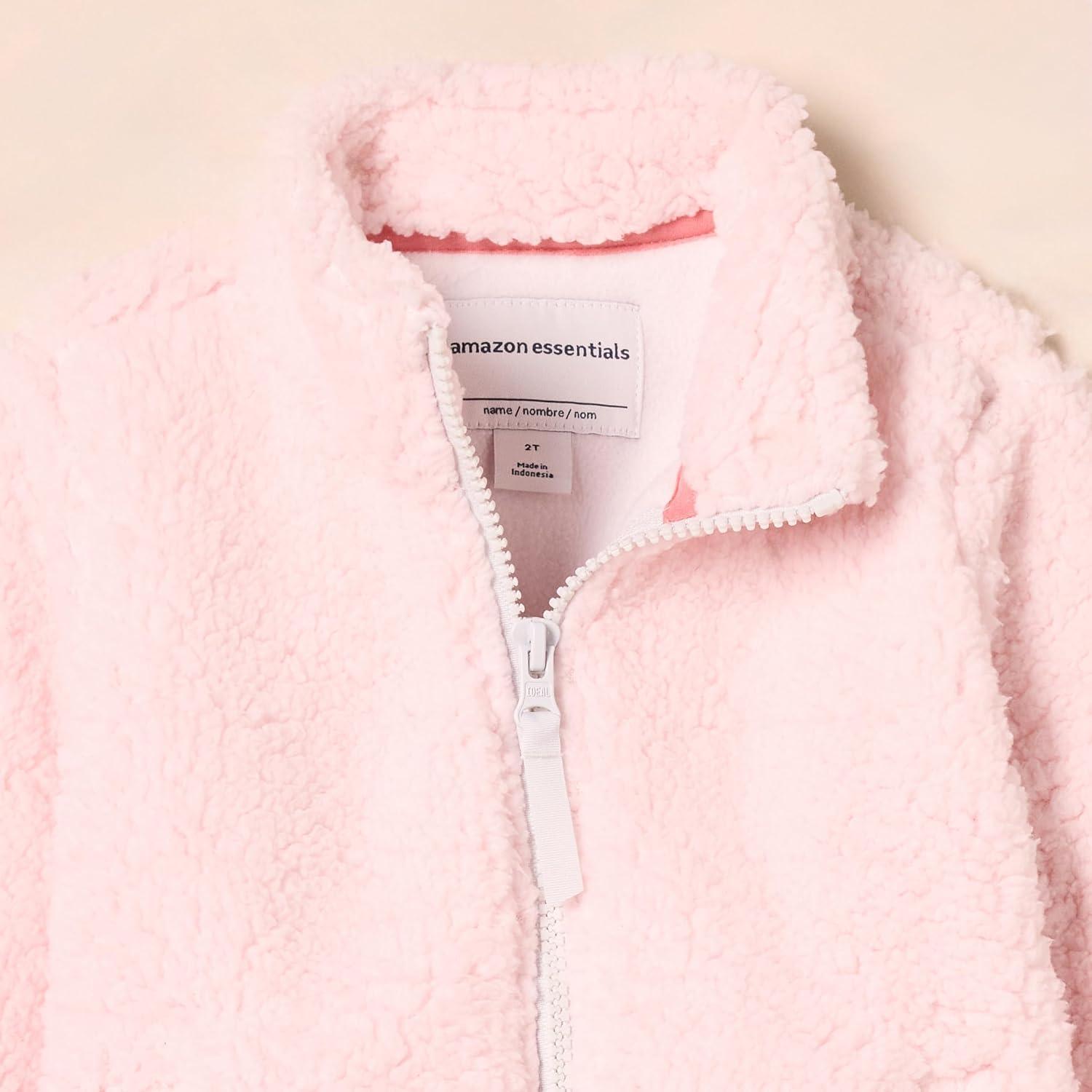 Amazon Essentials Girls and Toddlers’ Sherpa Fleece Full-Zip Jacket(Light Pink)