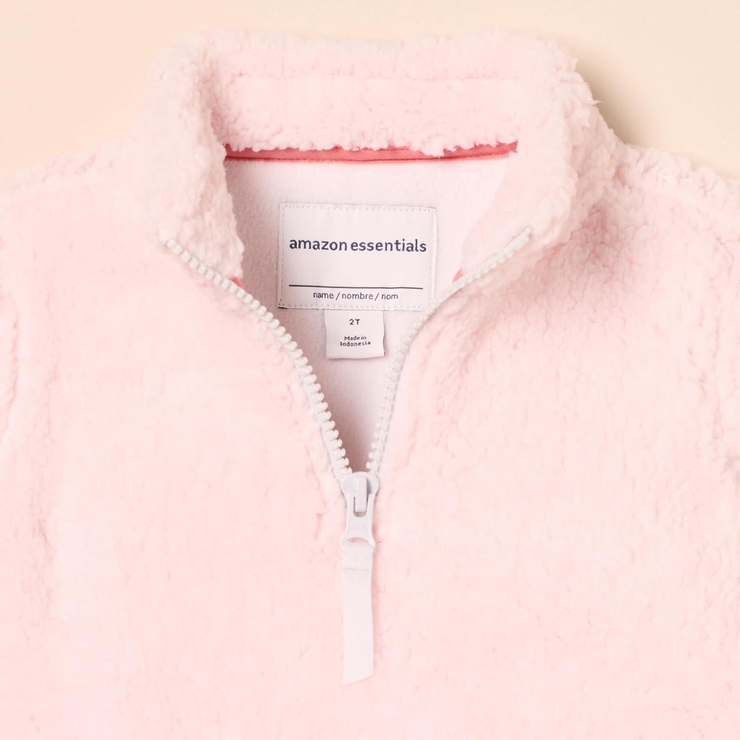 Amazon Essentials Girls and Toddlers’ Sherpa Fleece Quarter-Zip Jacket(Light Pink)