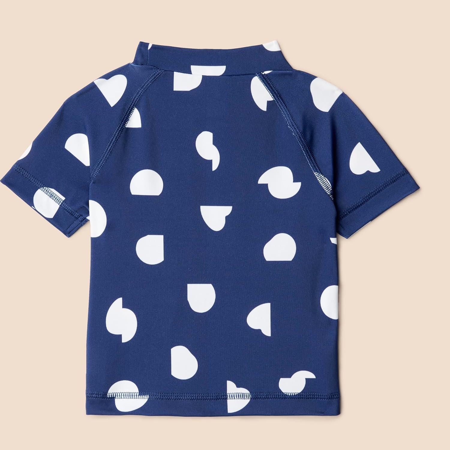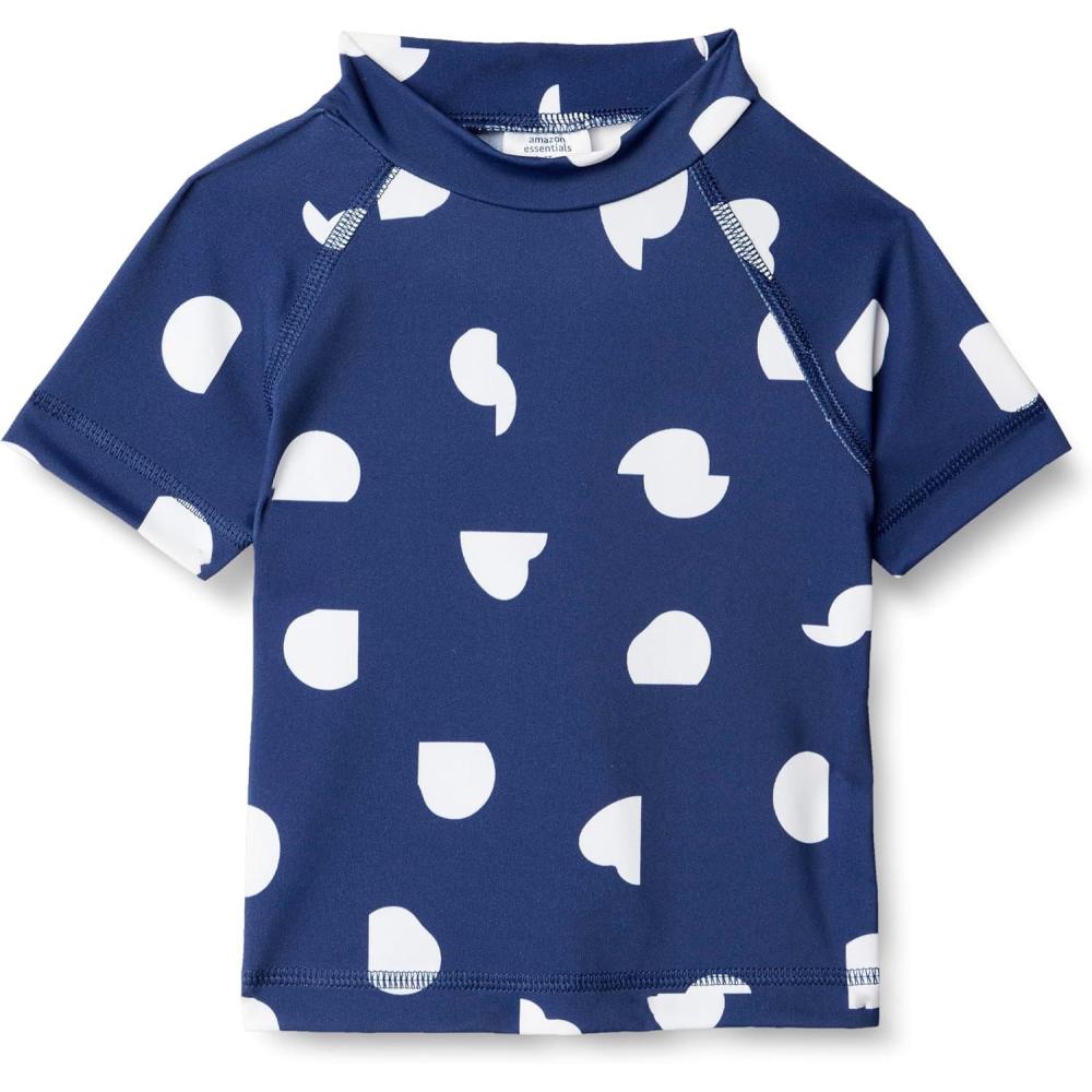 Amazon Essentials Girls and Toddlers’ Short Sleeve Rashguard T-Shirt(Deep Blue Ivory Abstract Dots)