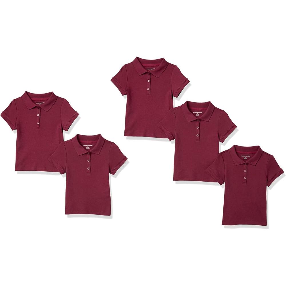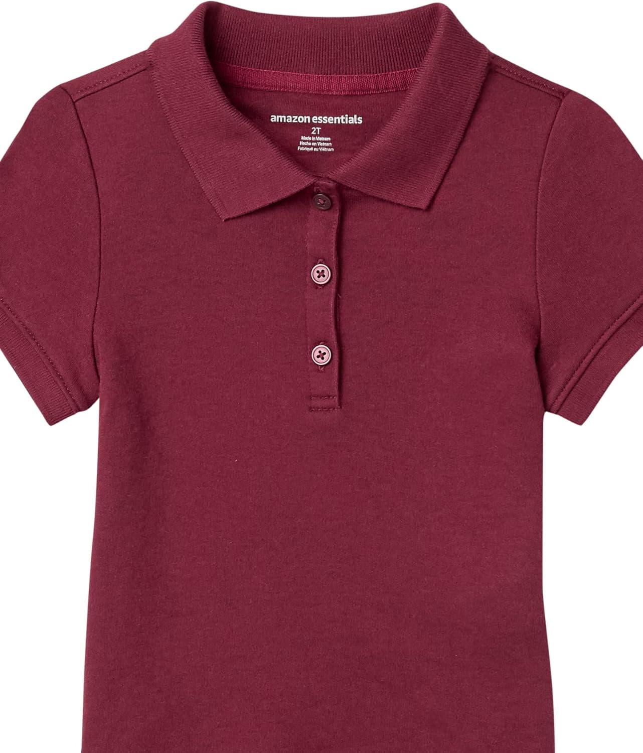 Amazon Essentials Girls and Toddlers’ Short Sleeve Uniform Interlock Polo Shirt, Multipacks(Burgundy)