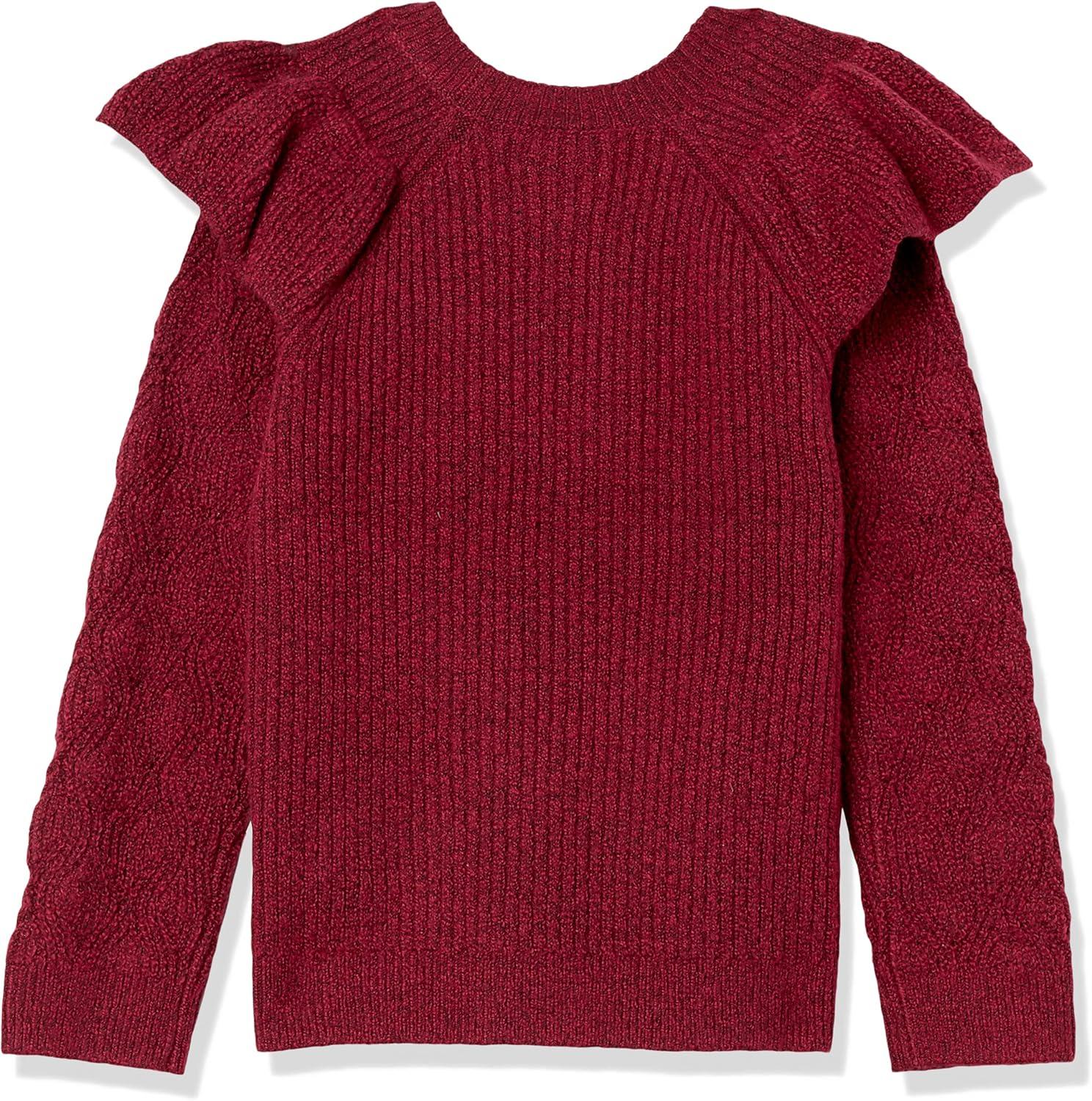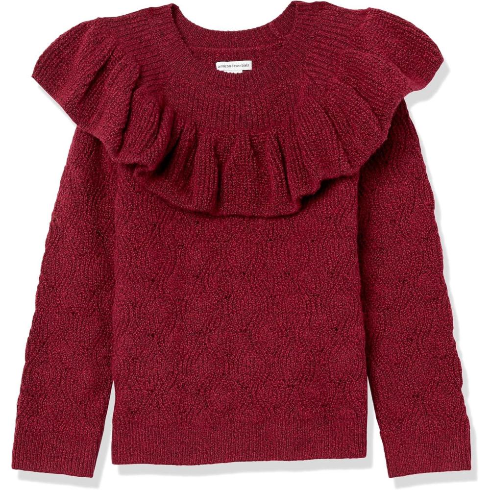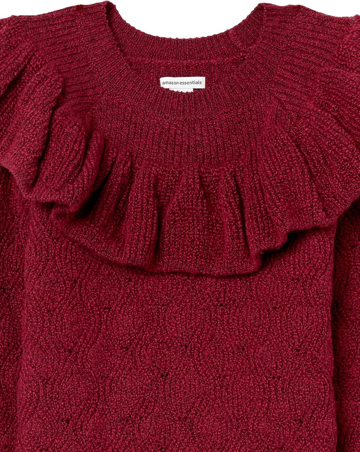 Amazon Essentials Girls and Toddlers’ Soft Touch Ruffle Sweater(Raspberry Red Shearling)