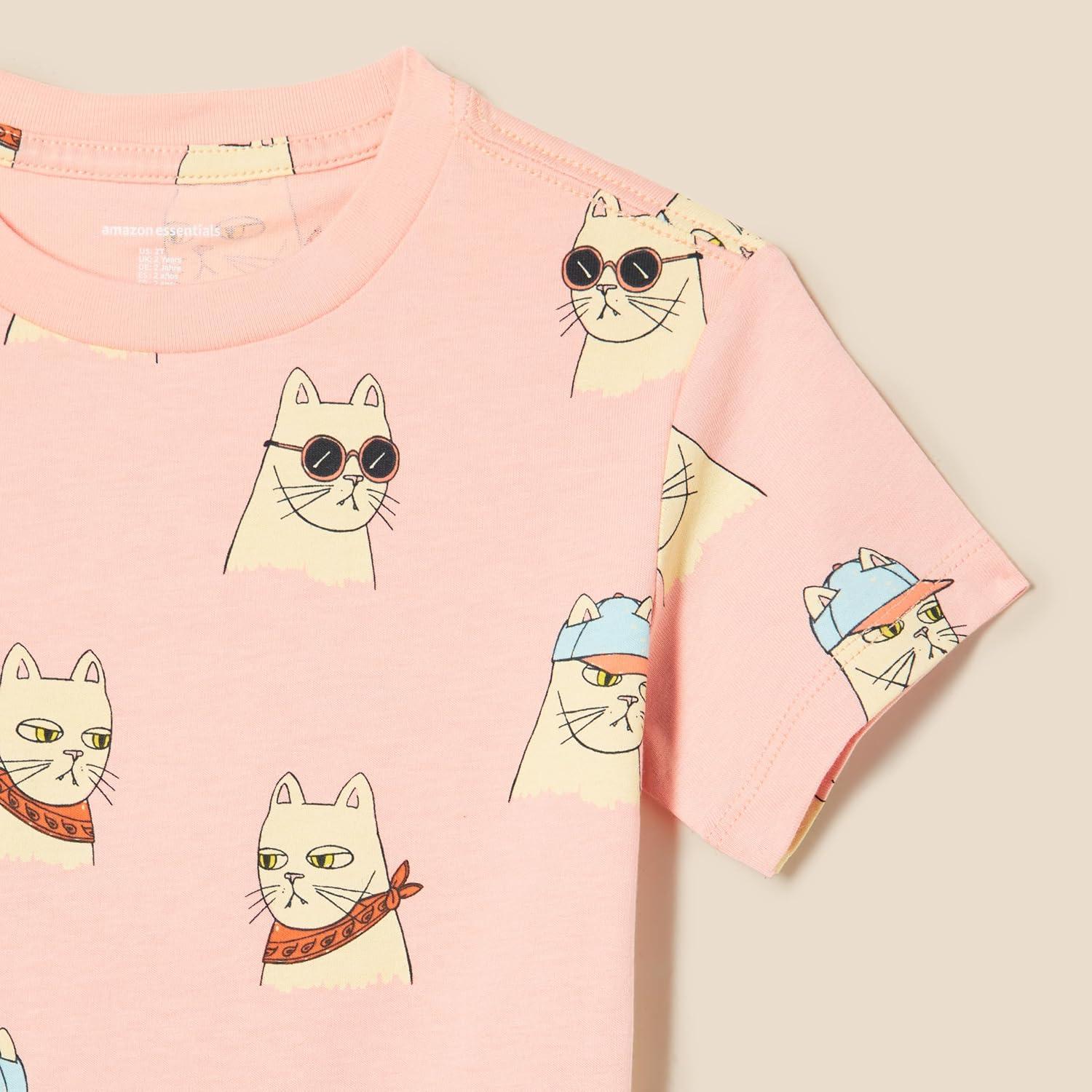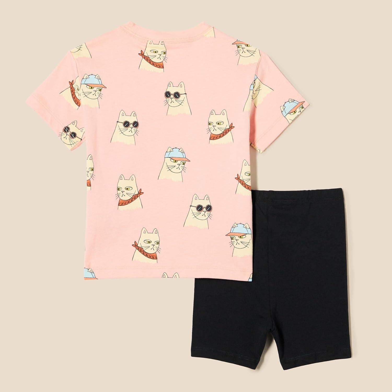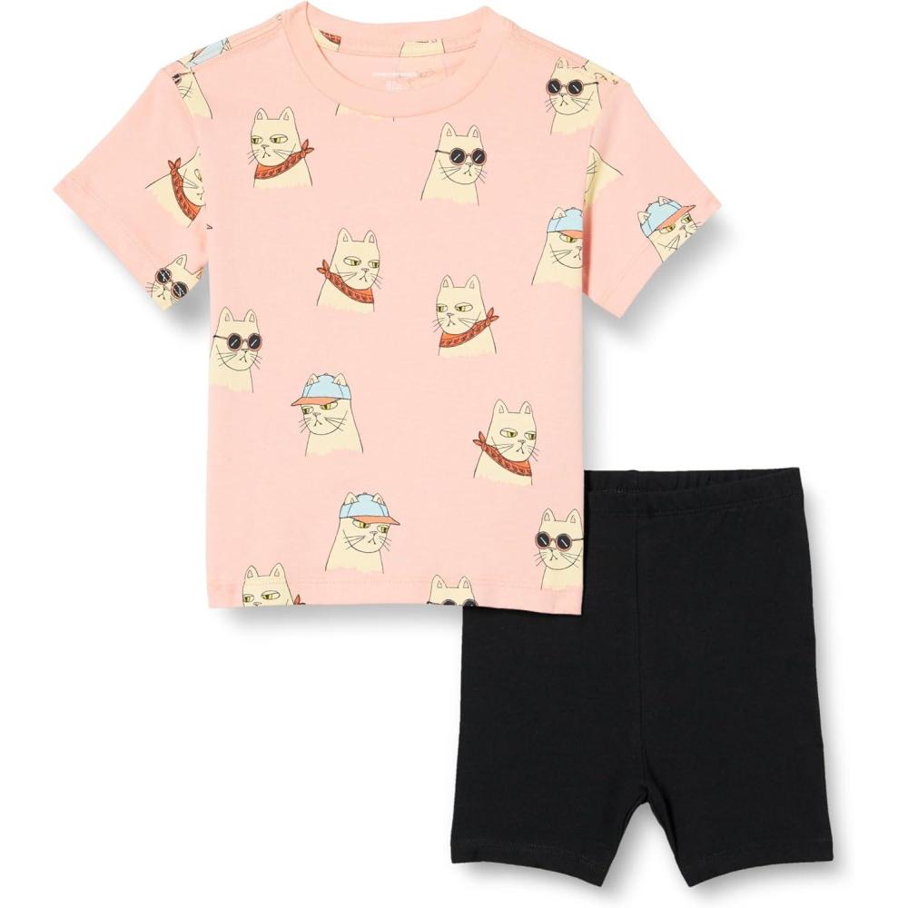Amazon Essentials Girls and Toddlers’ T-Shirt and Bike Short Set(Black/Cool Cat)