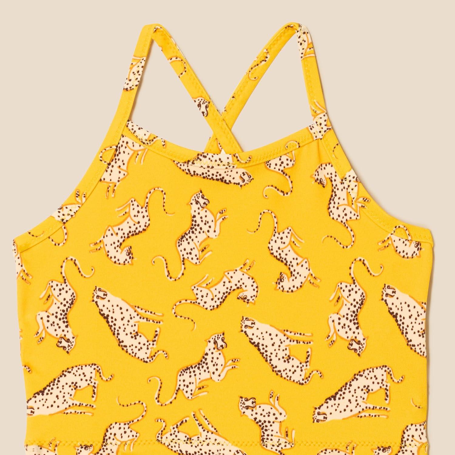 Amazon Essentials Girls and Toddlers’ Tankini Set(Golden Yellow Beige Leopard)