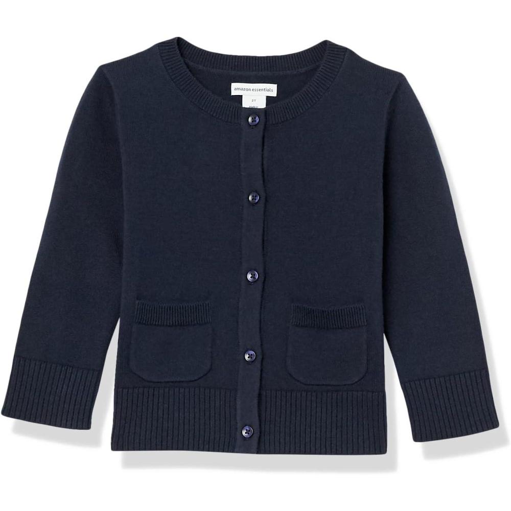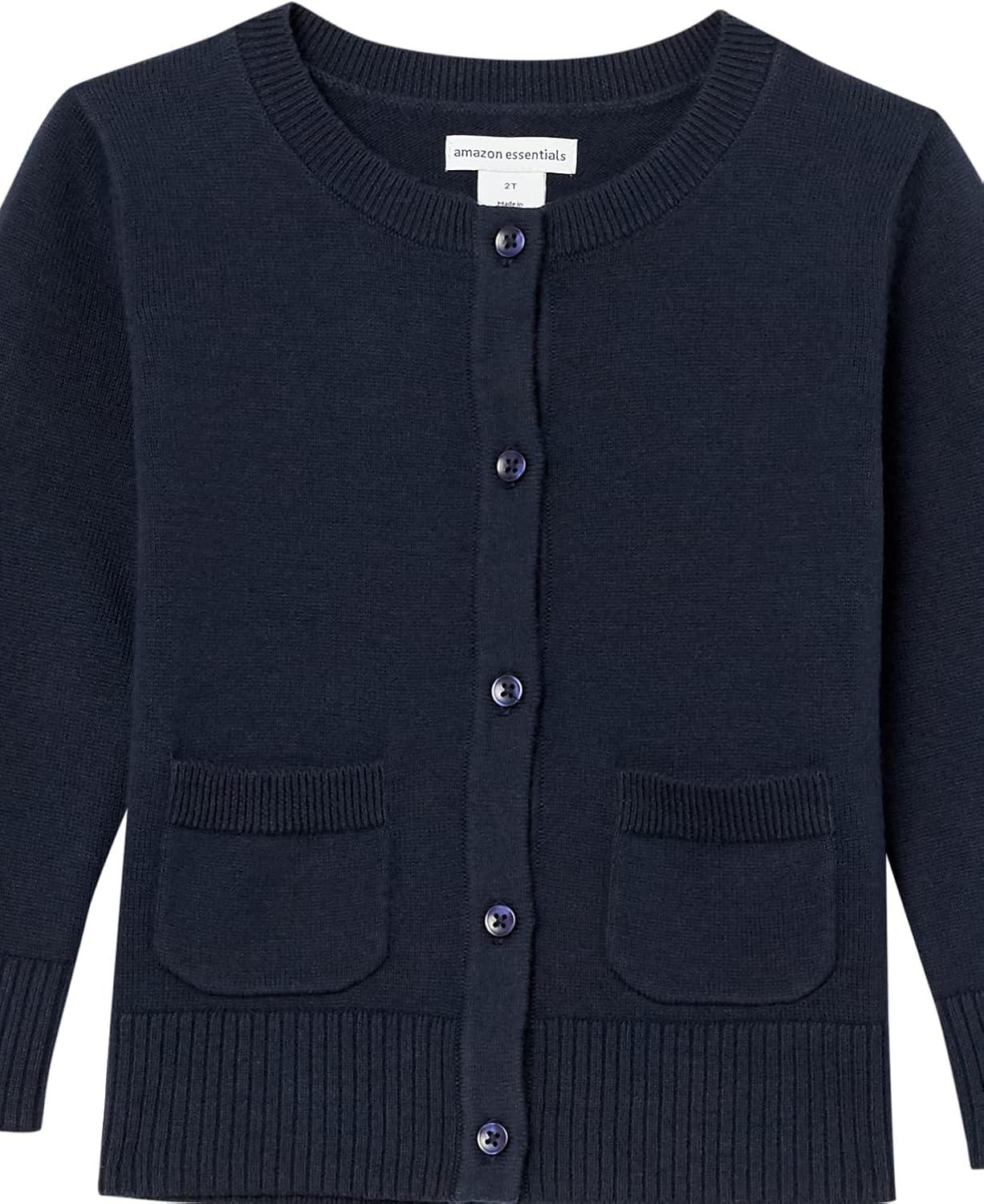 Amazon Essentials Girls and Toddlers' Uniform Slim Fit Crewneck Cardigan Sweater(Navy)