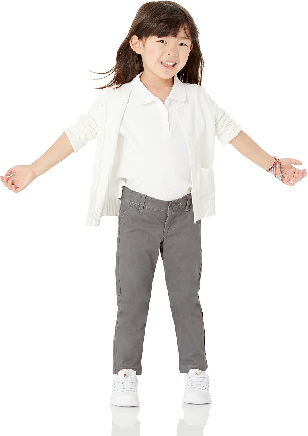 Amazon Essentials Girls and Toddlers’ Uniform Slim Fit Crewneck Cardigan Sweater(Light Grey Heather)