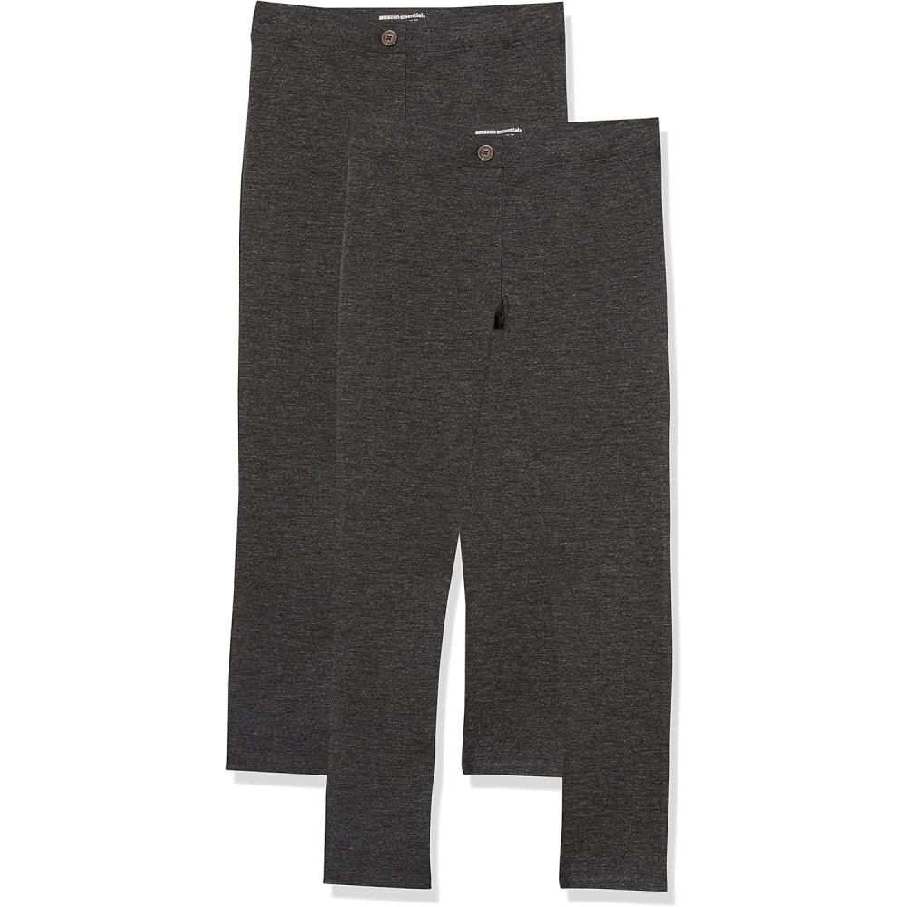Amazon Essentials Girls and Toddlers’ Uniform Slim Fit Ponte-Knit Pant, Pack of 2(Dark Grey)